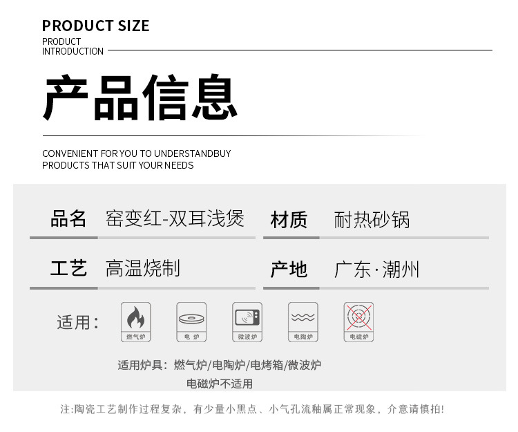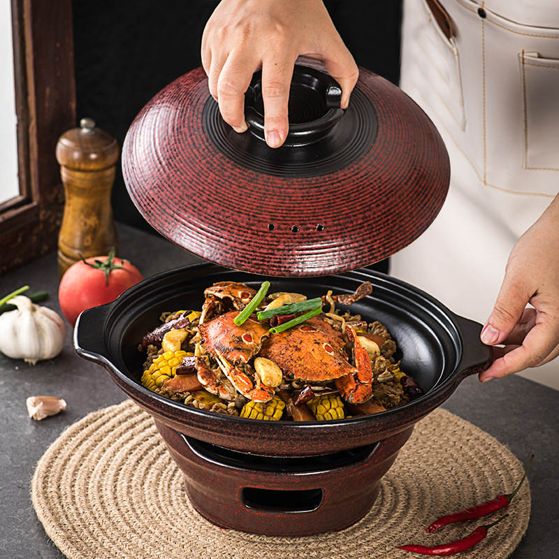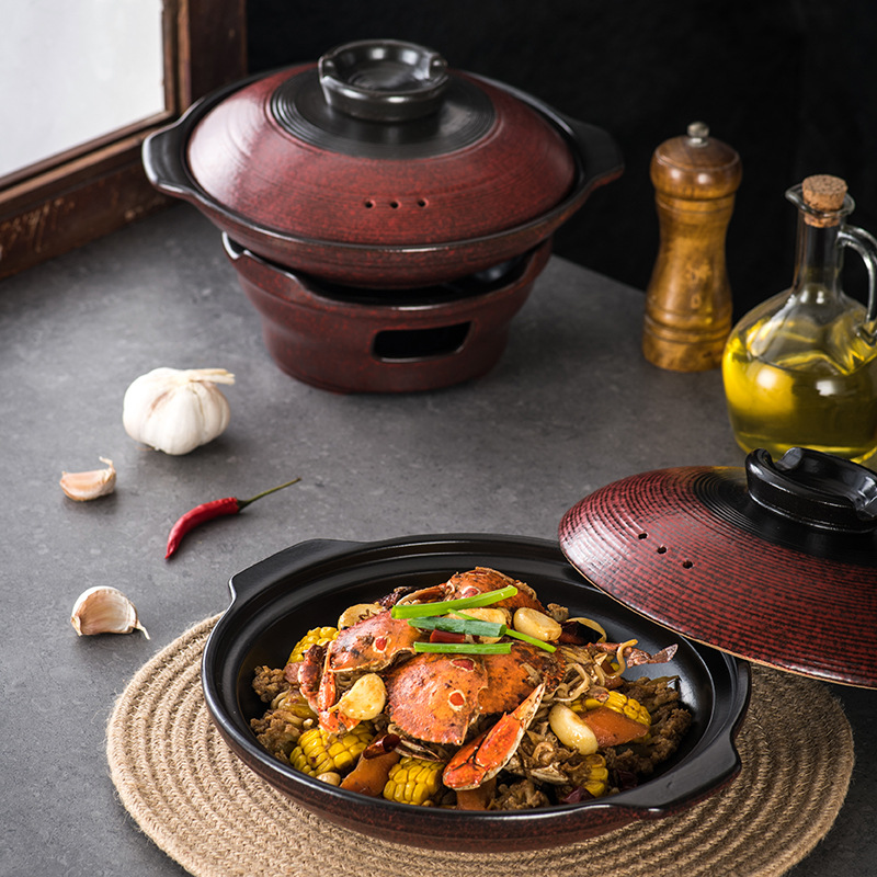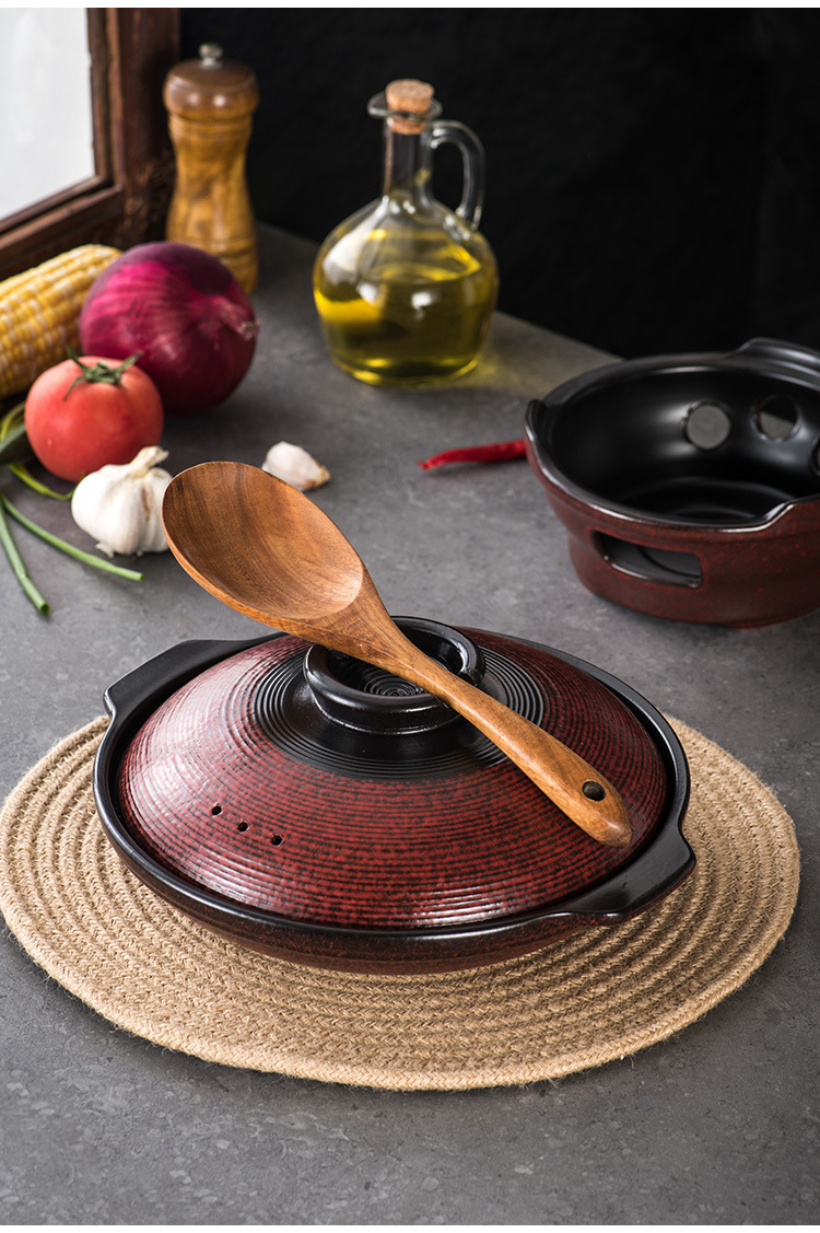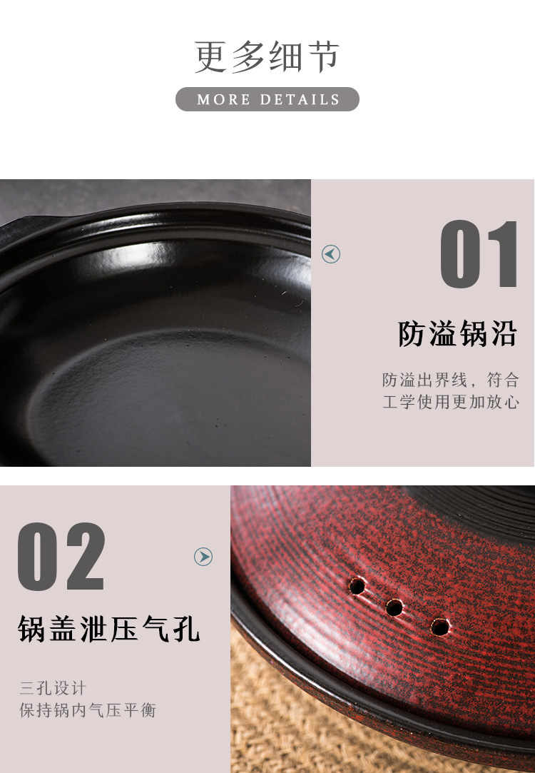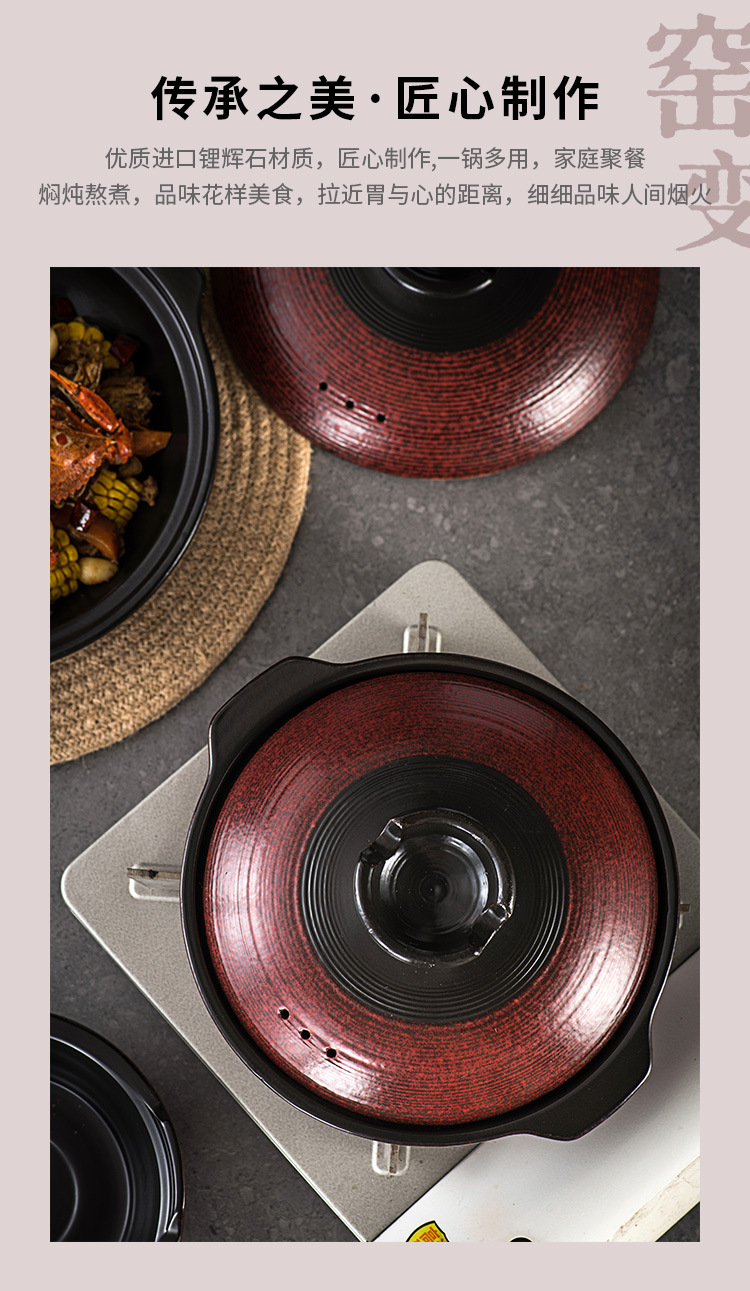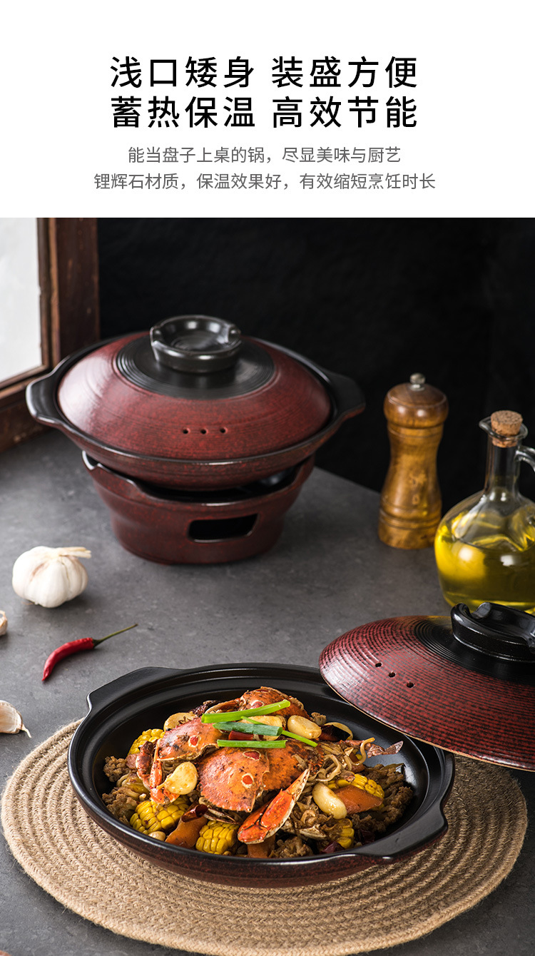 窑变红耐高温浅口砂锅家用干烧不裂煲汤燃气灶专用陶瓷干锅商用