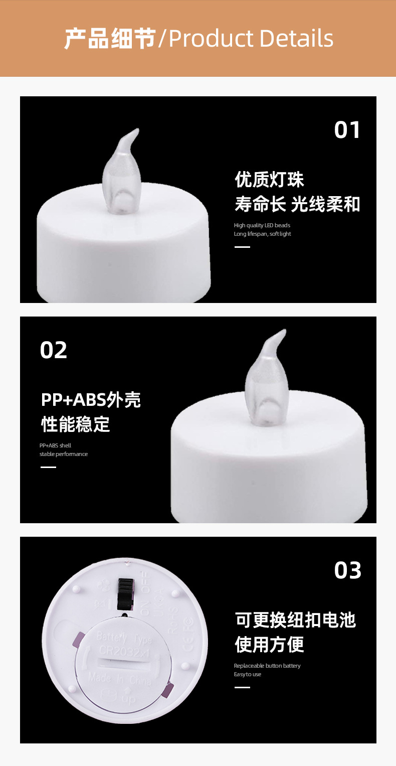跨境塑料仿真小茶蜡 酒吧布置电子仿真蜡烛气氛摆件led茶蜡电子灯