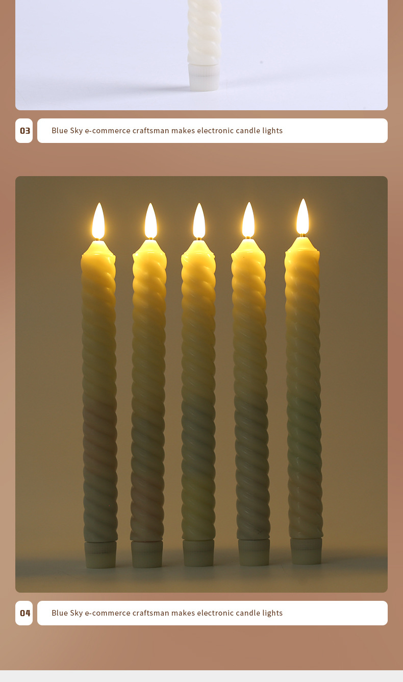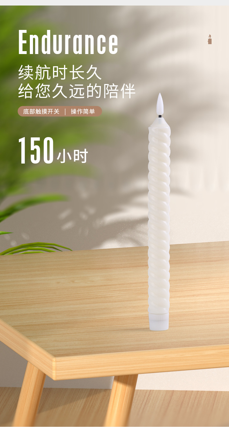 婚礼生日派对氛围装饰电子杆蜡创意螺旋纹圣诞节长条LED白色蜡烛