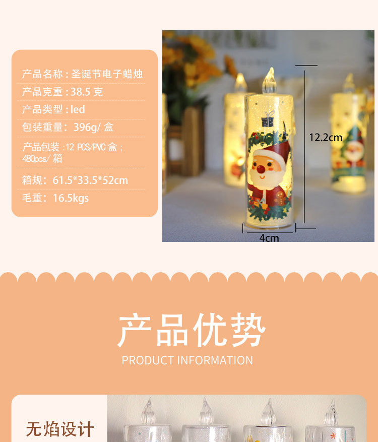 圣诞节LED水晶透明电子蜡烛灯氛围夜灯欧式烛台派对婚庆装饰摆件