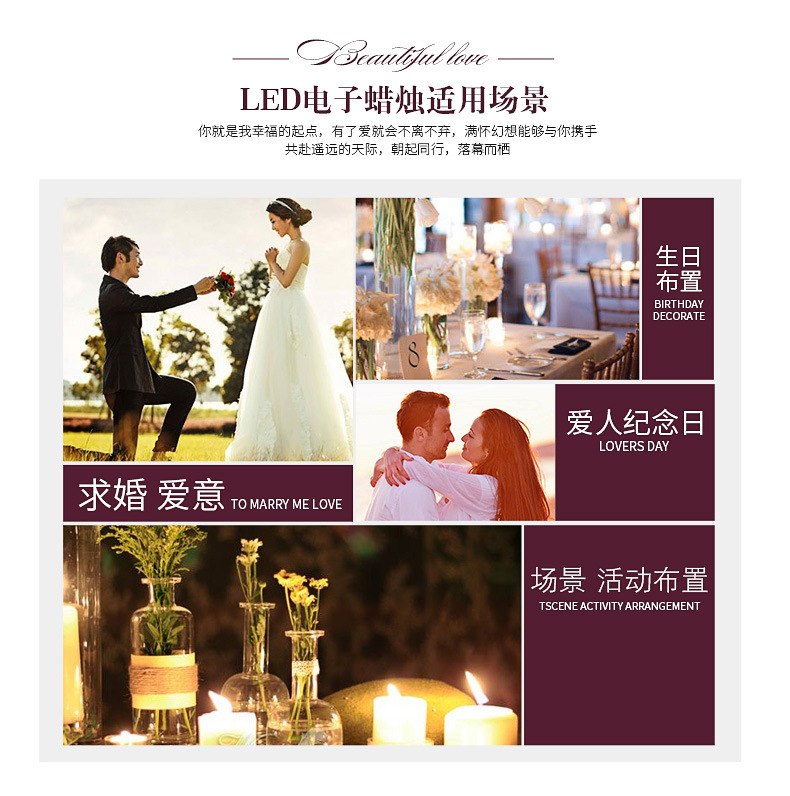 厂家批发 耐用led电子蜡烛灯 表白情人节礼物 婚庆派对装饰蜡烛
