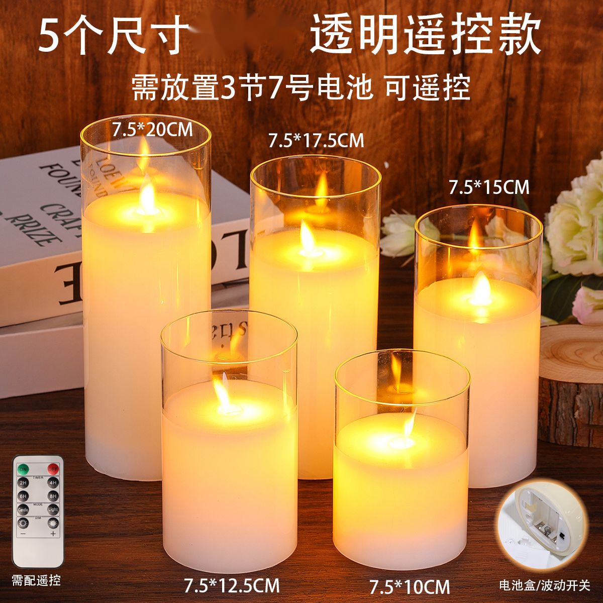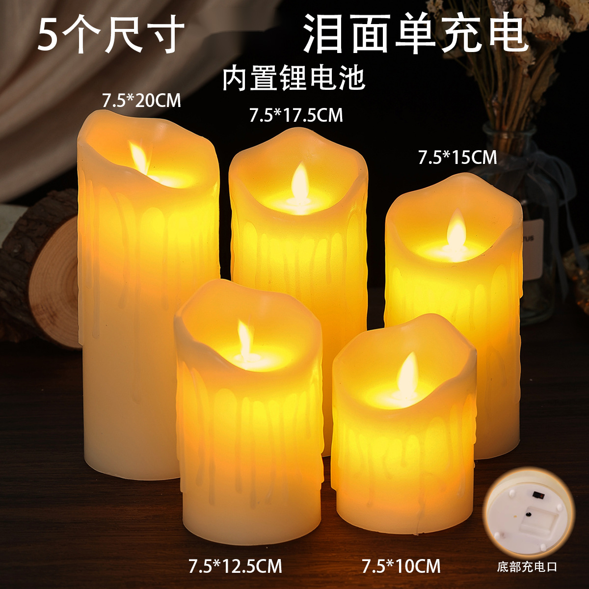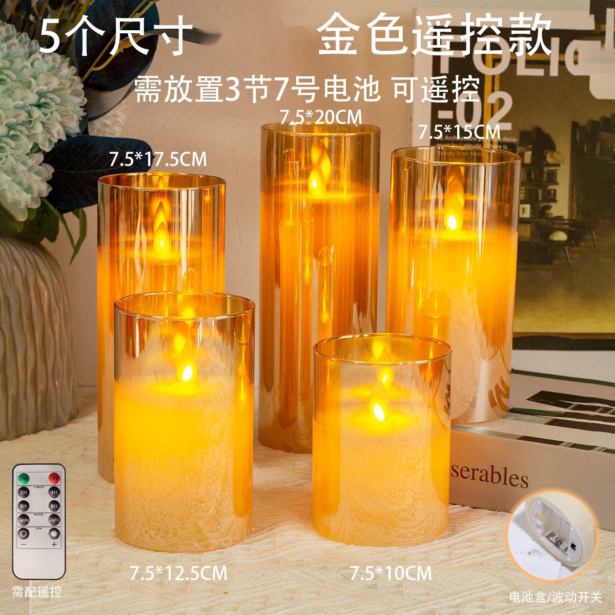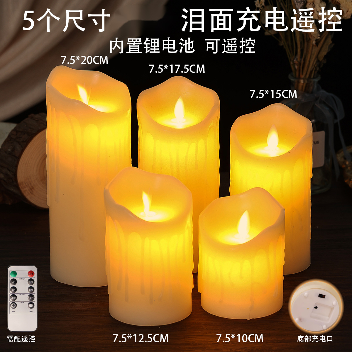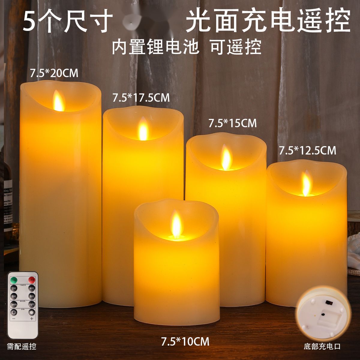 跨境玻璃石蜡LED电子蜡烛灯烛光音乐剧本仿真充电遥控氛围灯无火