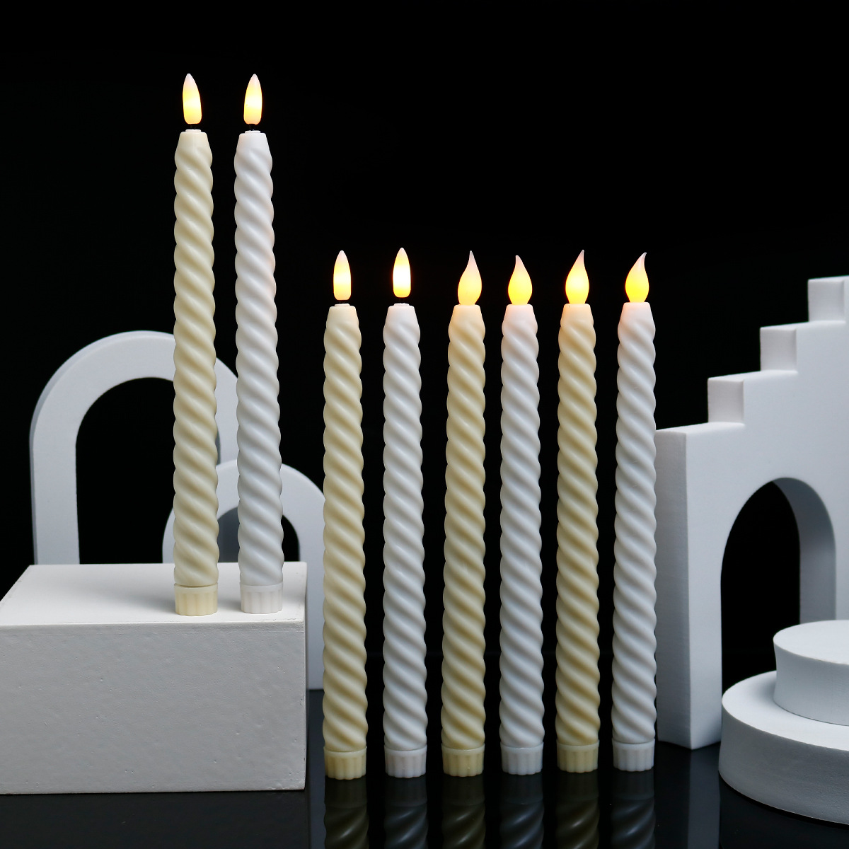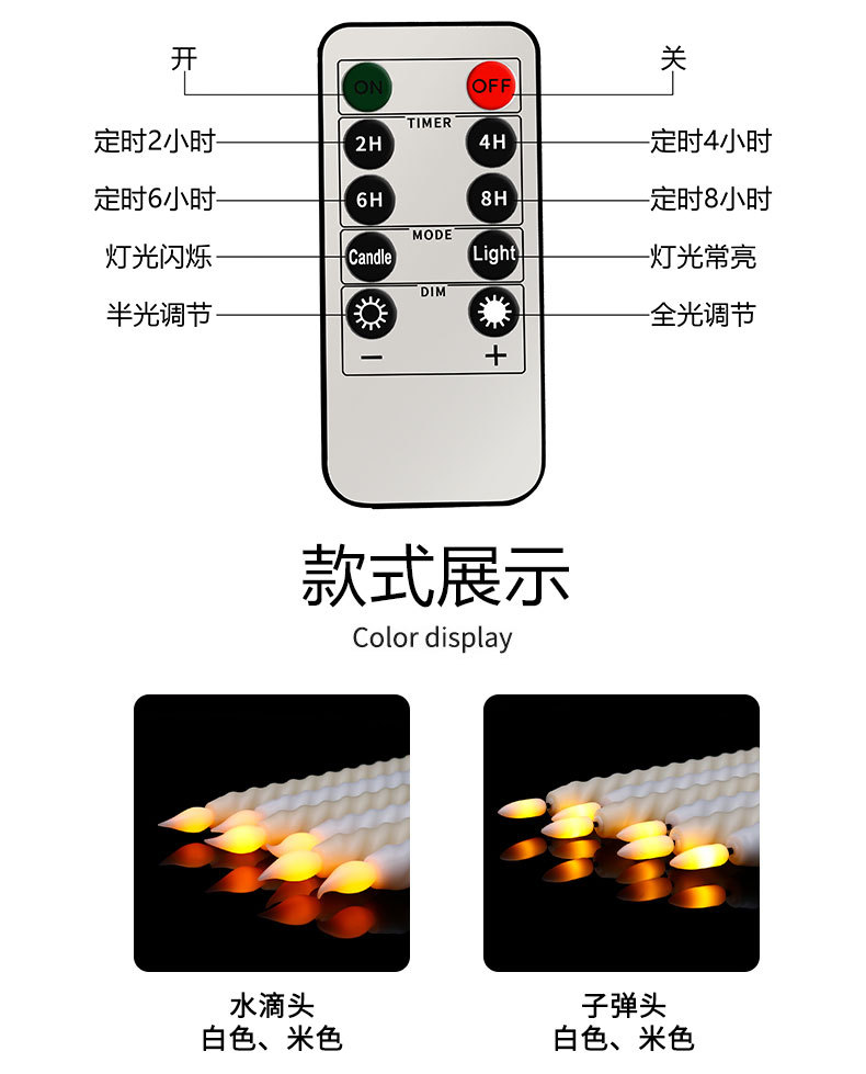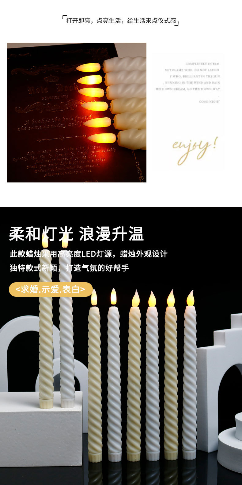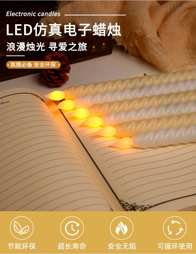 跨境LED长条蜡烛灯塑料遥控电子蜡烛浪漫结婚礼物螺纹6支装子弹头