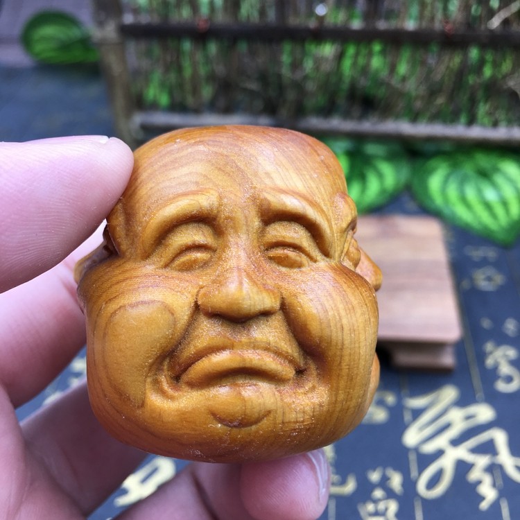 崖柏四面佛 喜怒哀乐手把玩摆件 木质工艺品 手把件木雕小摆件