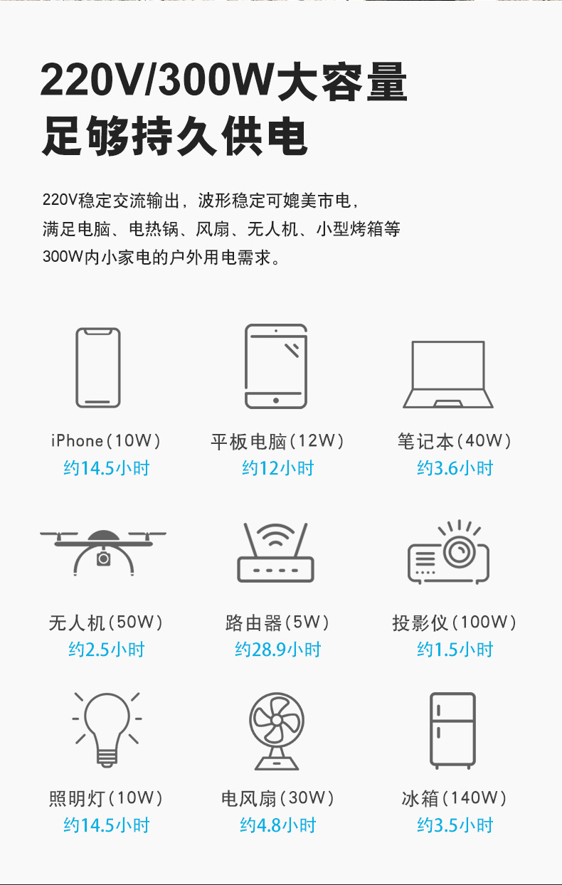 300W大功率储能户外应急电源220V大容量太阳能便携式家用移动电源