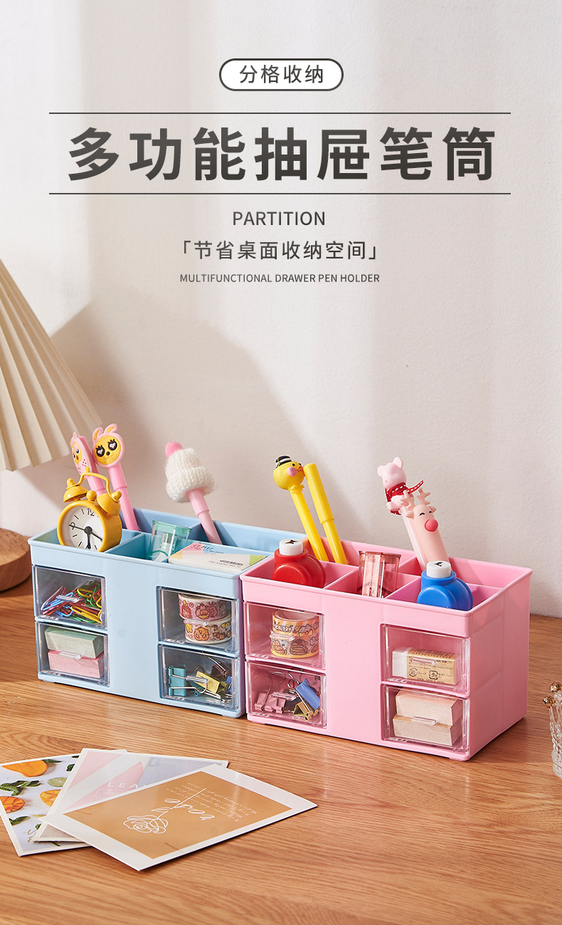 学生办公文具笔筒整理防尘抽屉式杂物大容量置物盒家用桌面收纳盒