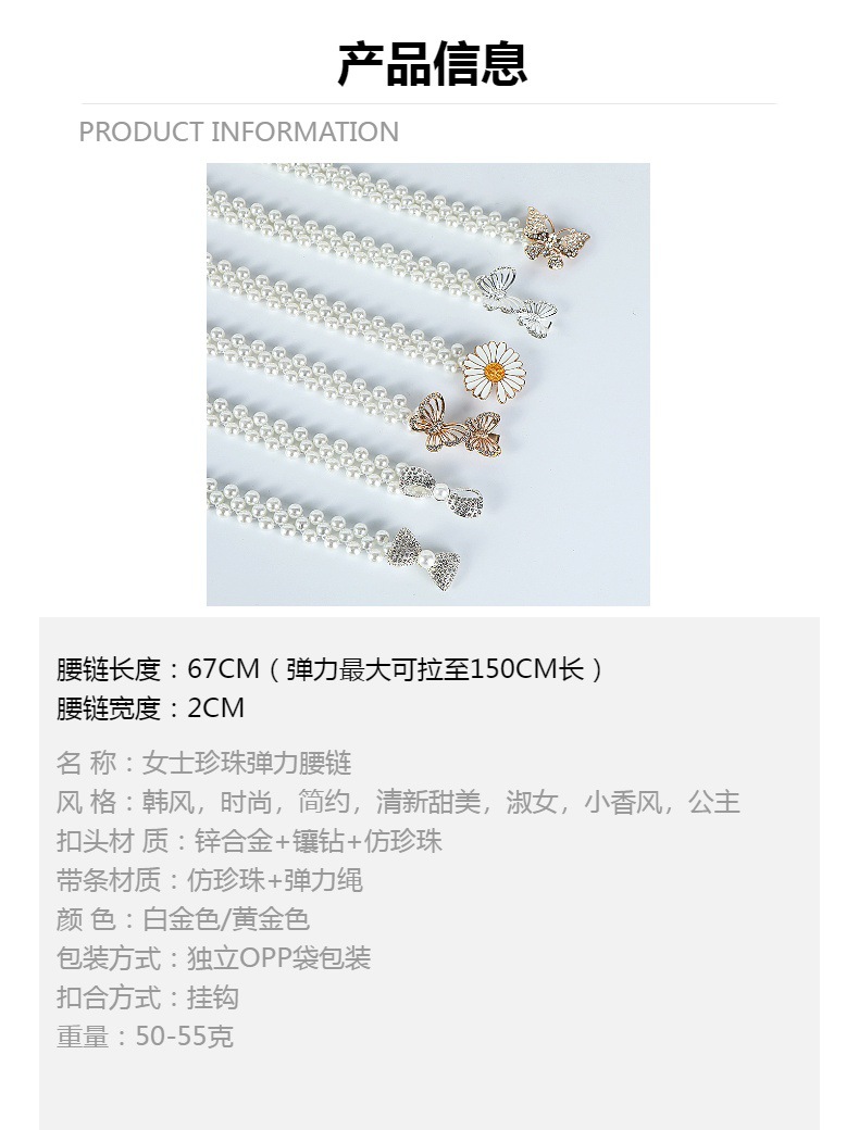 珍珠腰链女款高级感腰带女士时尚蝴蝶结镶钻百搭装饰裙子腰带批发