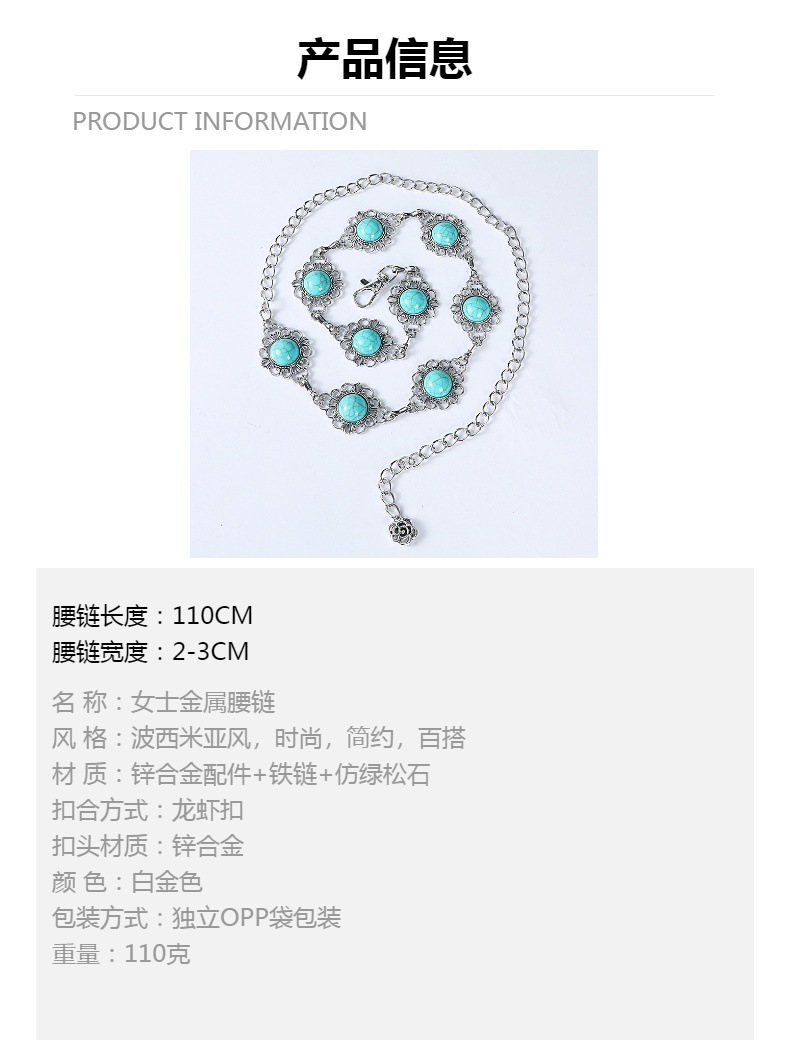 腰链女款高级感百搭装饰裙子腰带女士时尚休闲绿松石复古裤链批发