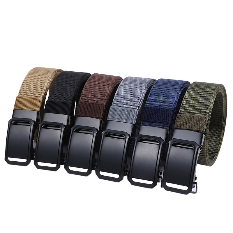 男士自动扣尼龙腰带休闲户外运动战术腰带学生军训帆布裤腰带批发
