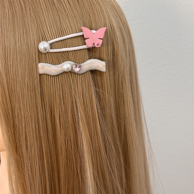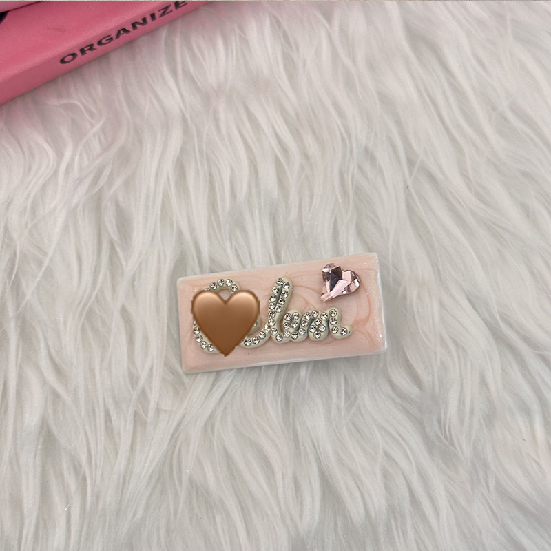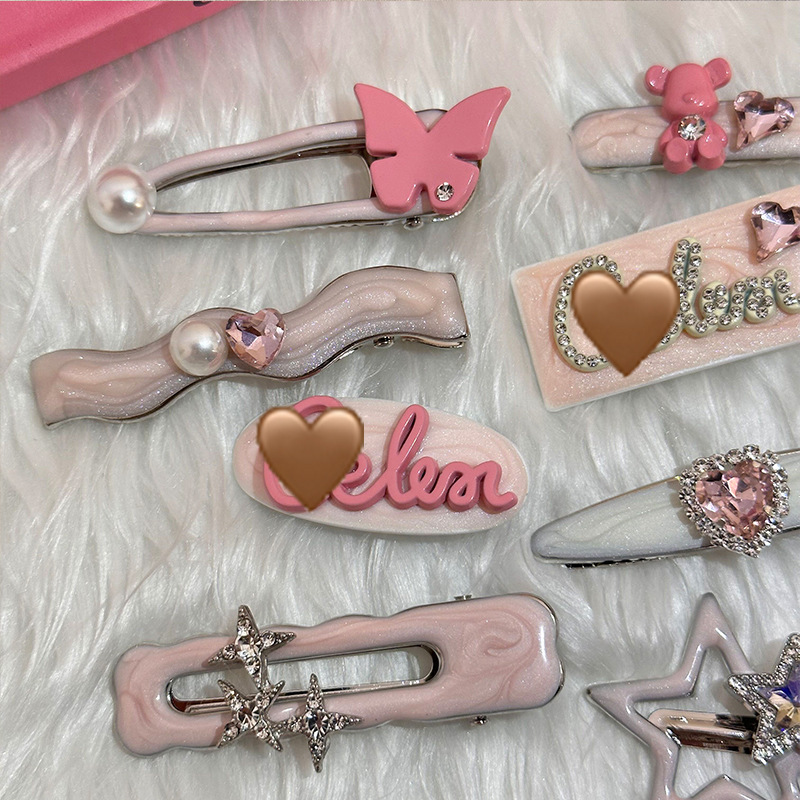 简约可爱金属字母粉色系滴油水钻发卡高级边夹鸭嘴夹发夹头饰边夹