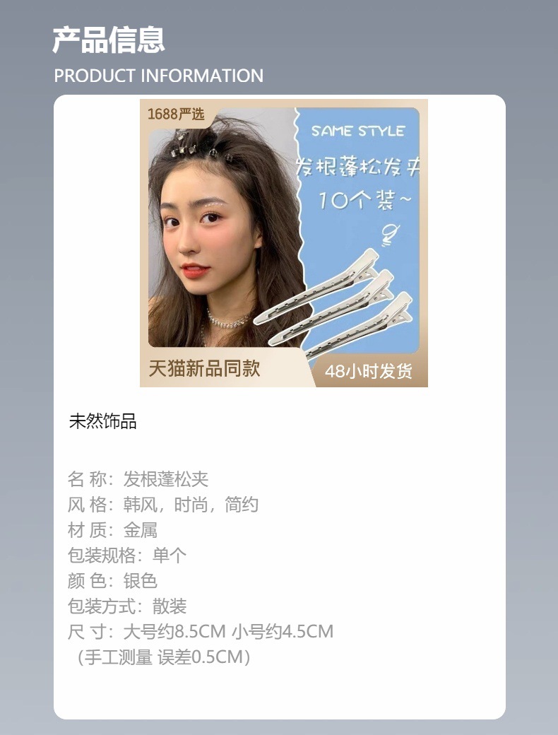 发根头发蓬松卡子无痕发夹刘海鸭嘴定位夹化妆师定型夹子头饰发卡