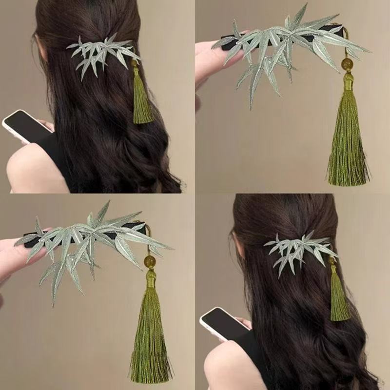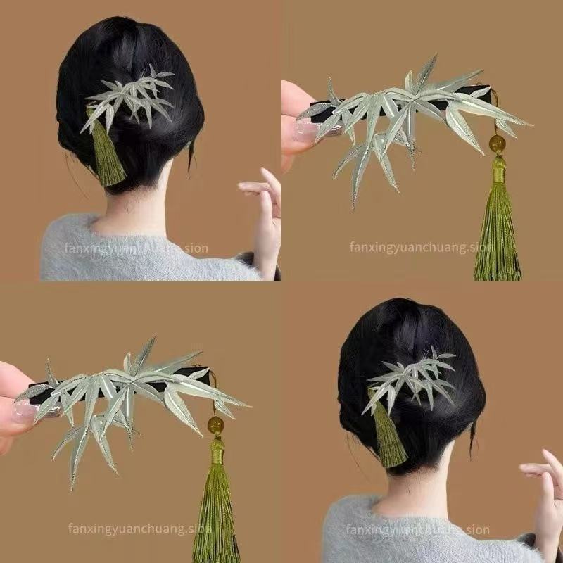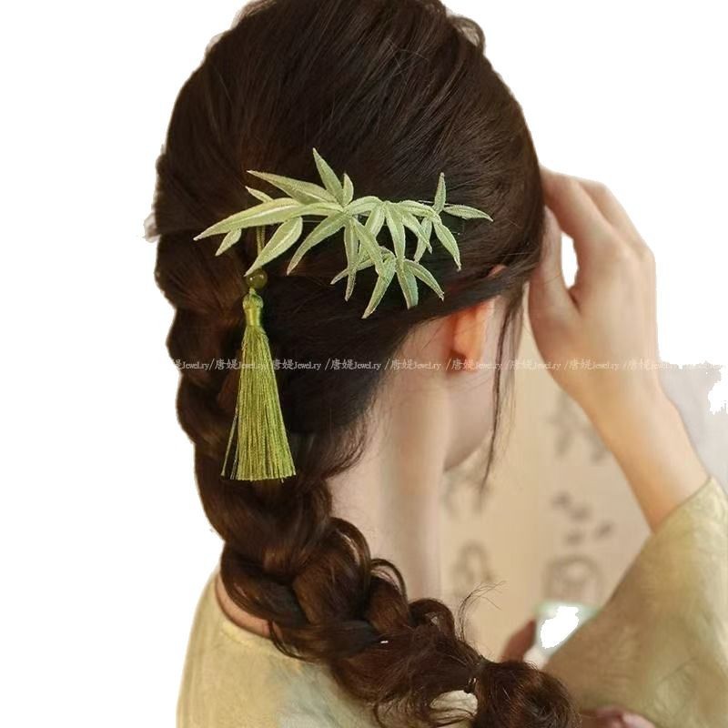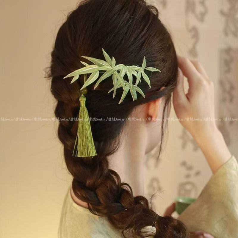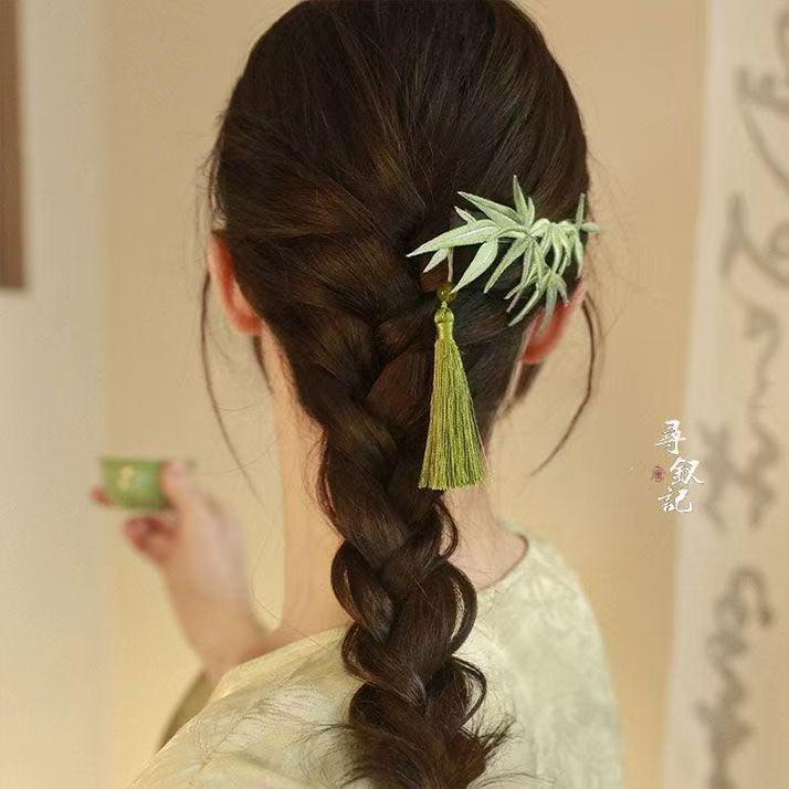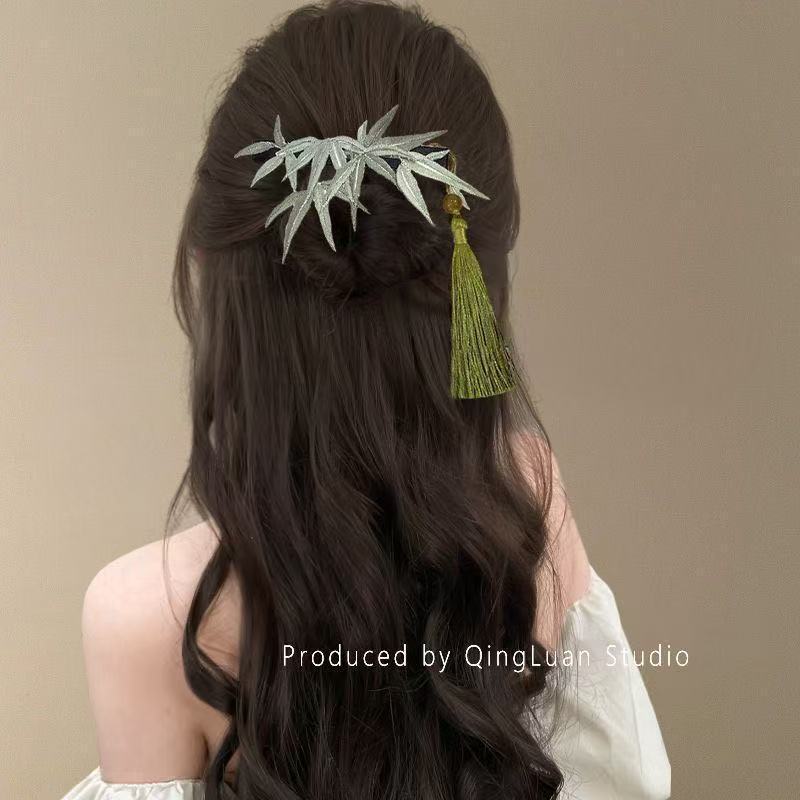 竹影扶疏~竹子仿缠花珍珠发夹中式国风超仙后脑勺夹弹簧夹盘发器
