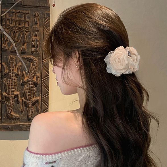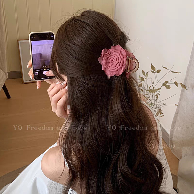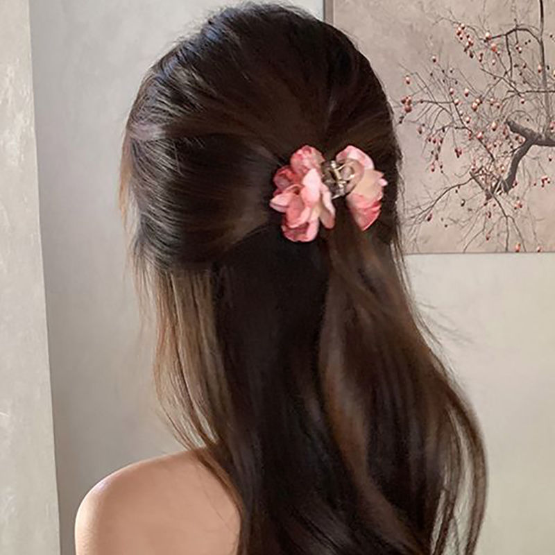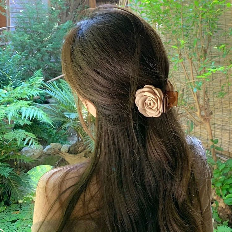 法式温柔风山茶花发夹女2025年新款花朵发卡后脑勺鲨鱼夹发饰头饰
