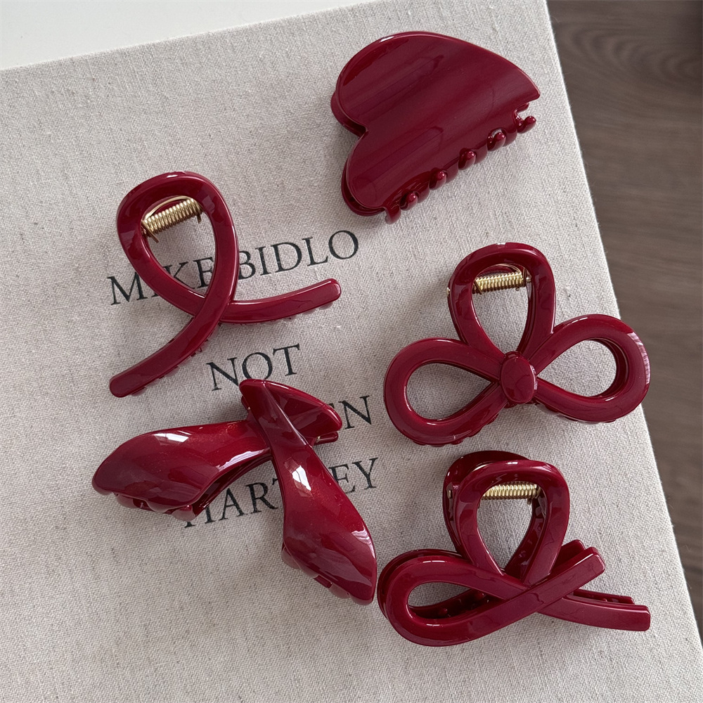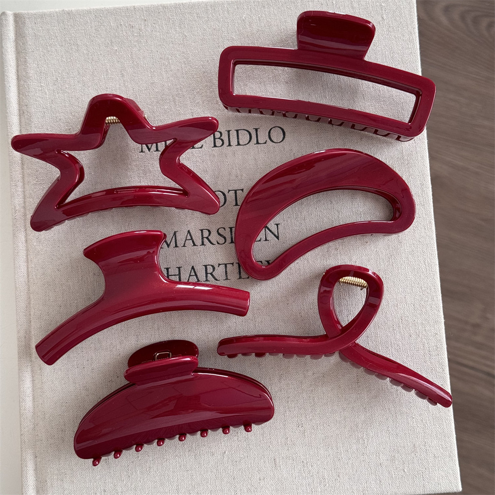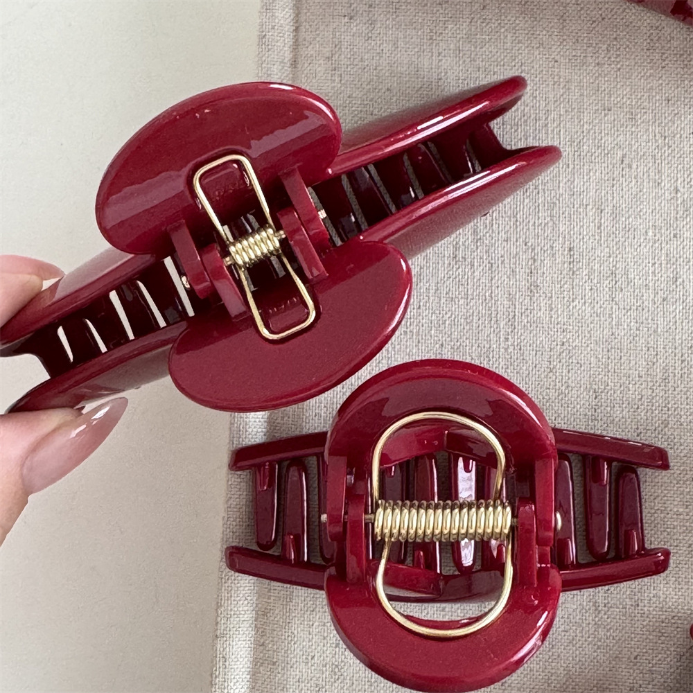 金细闪红色高级感发夹新年红节日抓夹盘发鲨鱼夹发饰质感新款
