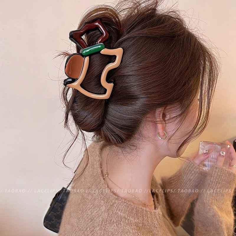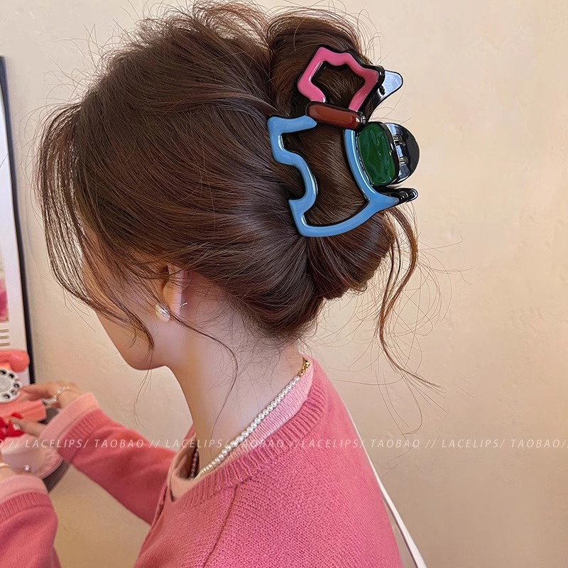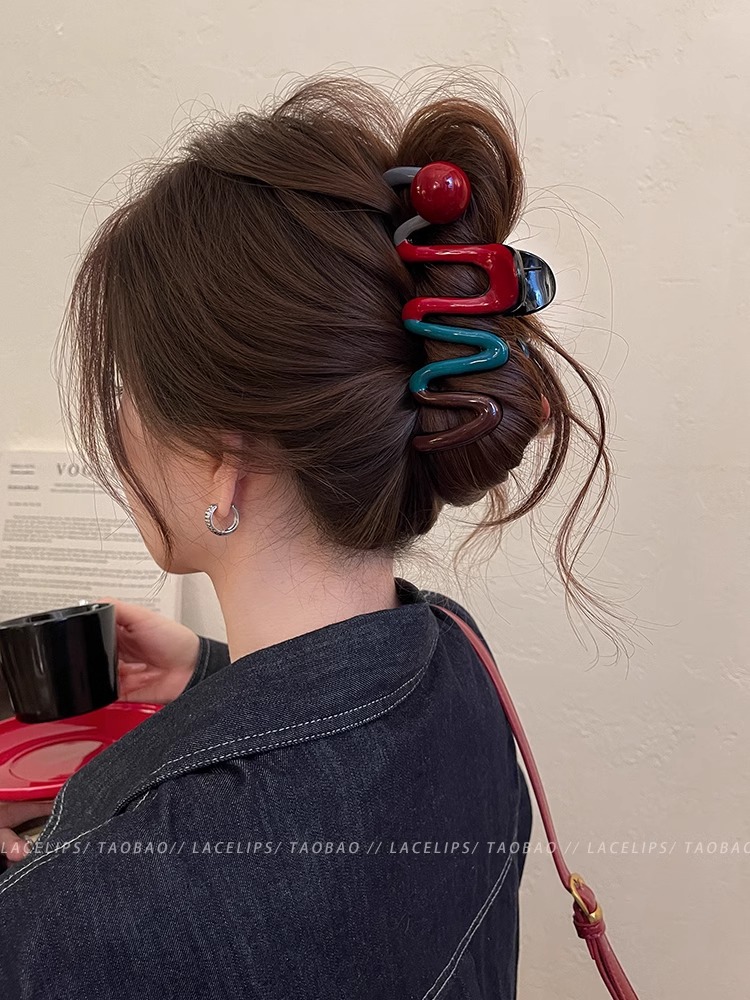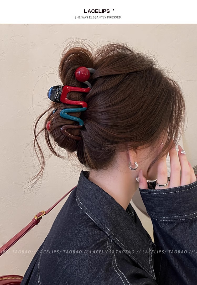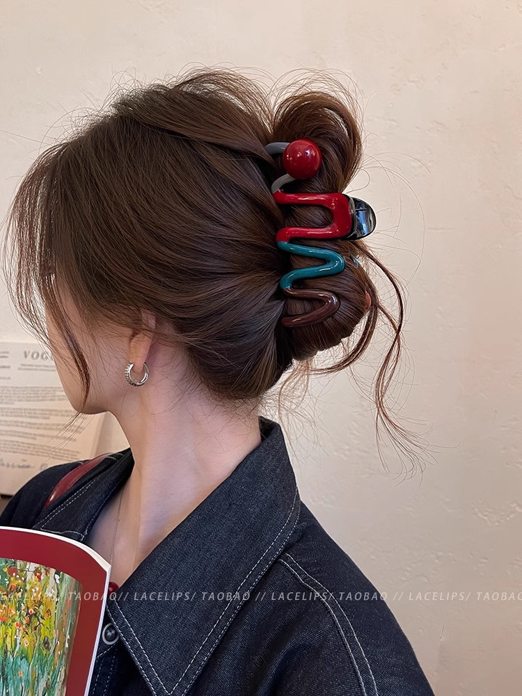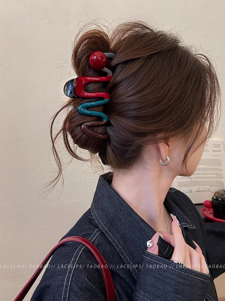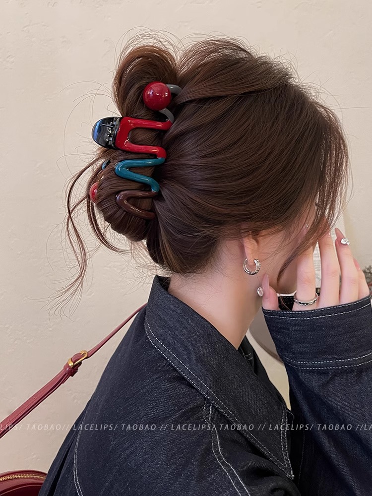 红蓝撞色头发抓夹大号鲨鱼夹发夹女后脑勺2025新款高级感夹子发饰