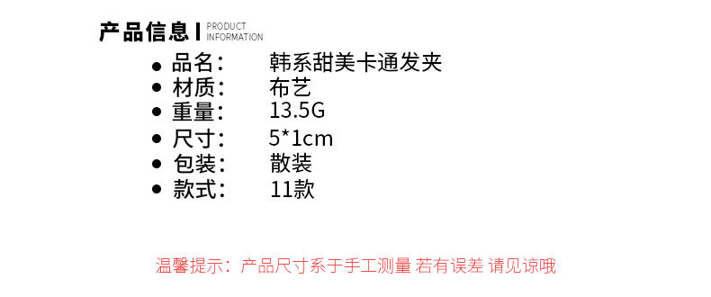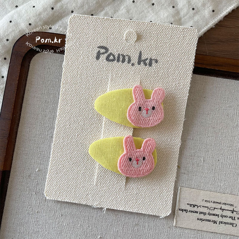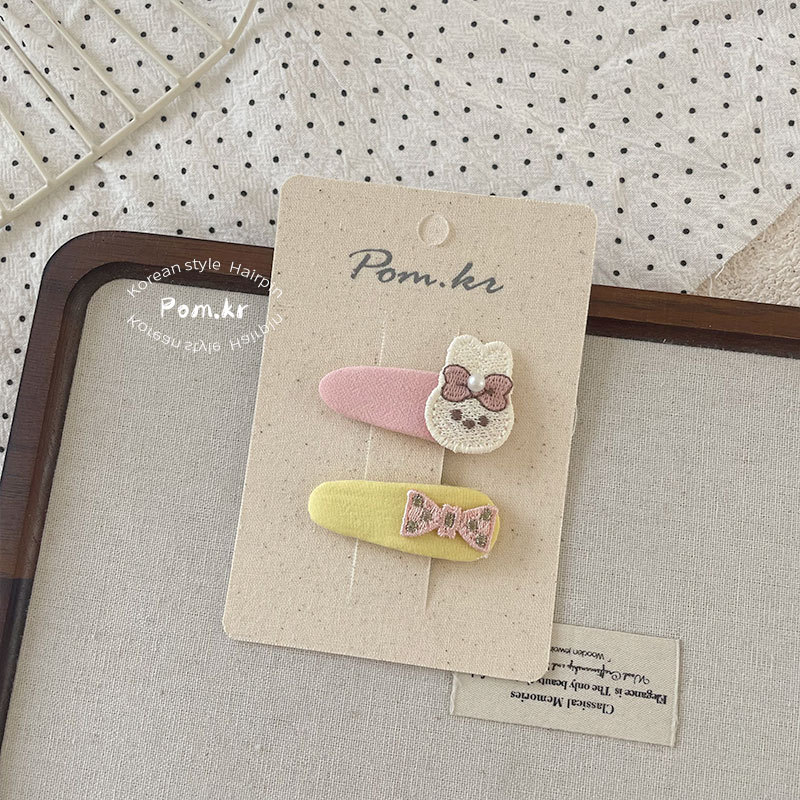 新款韩版甜美卡通小熊发夹少女侧边夹布艺对装兔兔儿童掰掰夹发饰