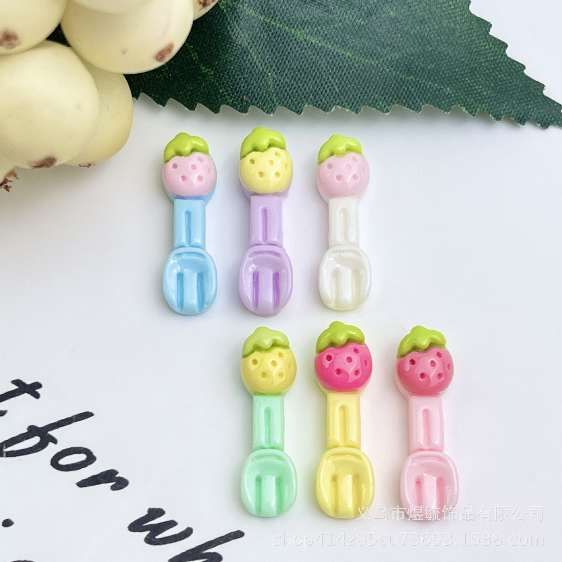 马卡龙餐具奶酪叉筷子勺子迷你小号卡通可爱鞋扣配饰发夹树脂配件