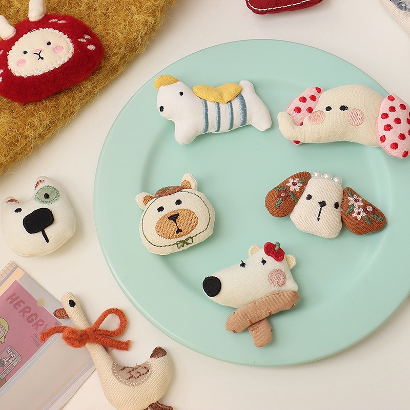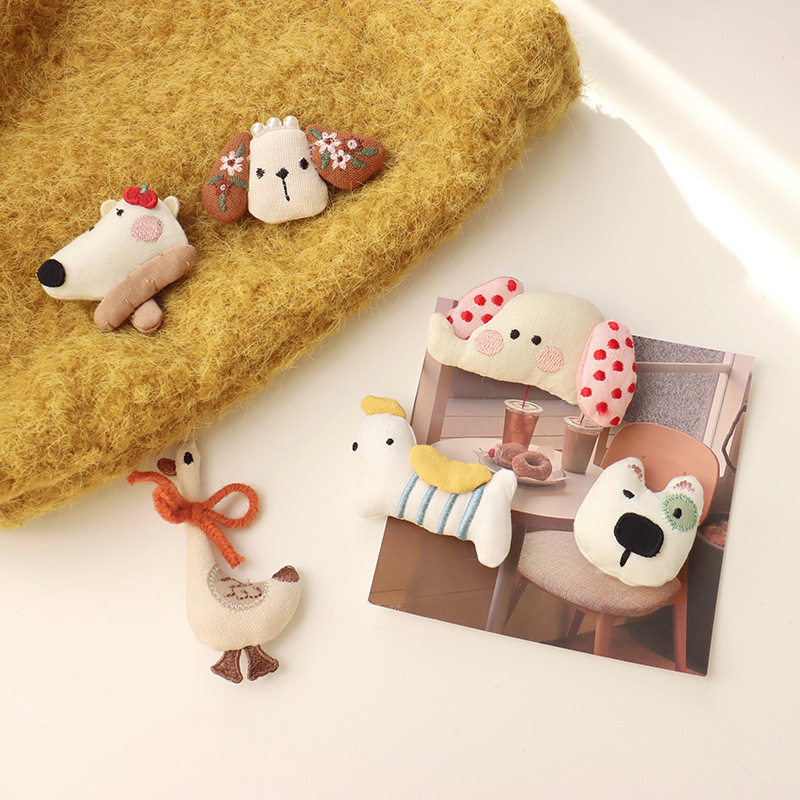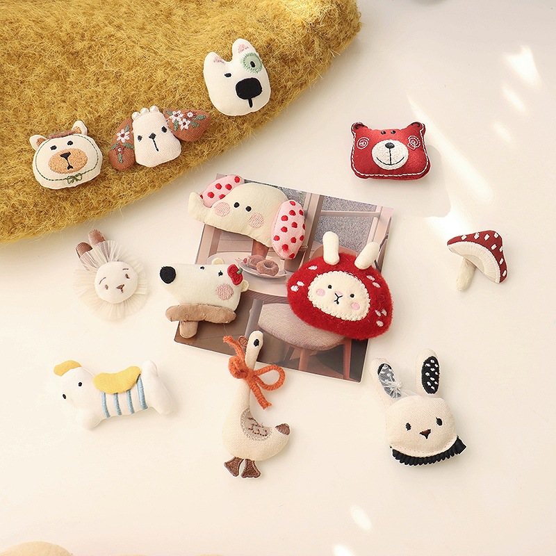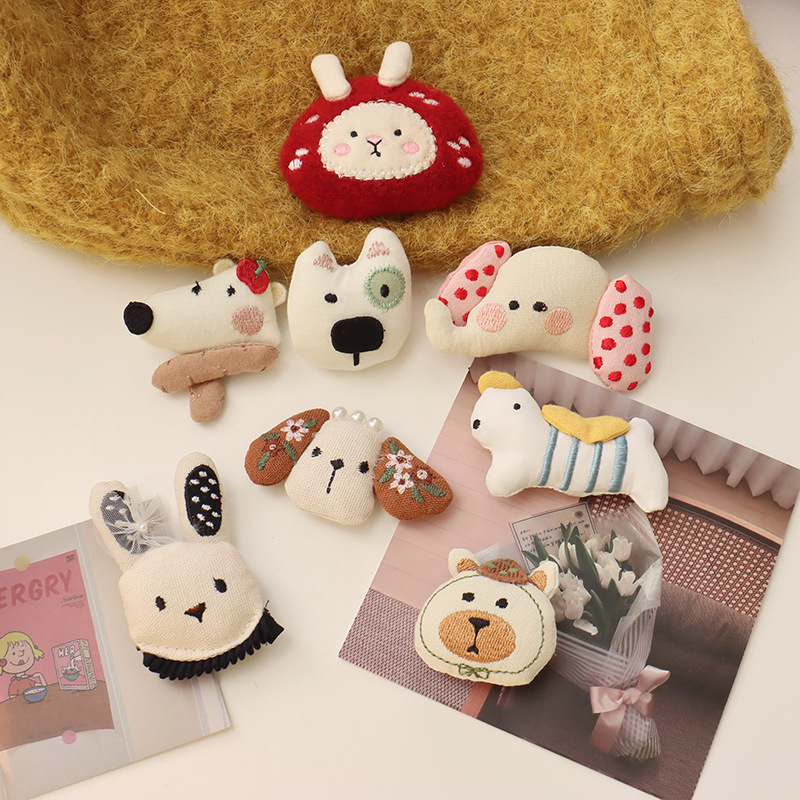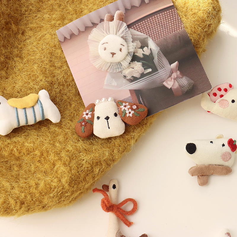 森系韩国布艺小熊胸针配饰可爱小狗小象头饰发夹diy少女心配件