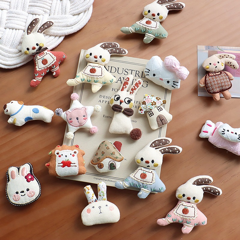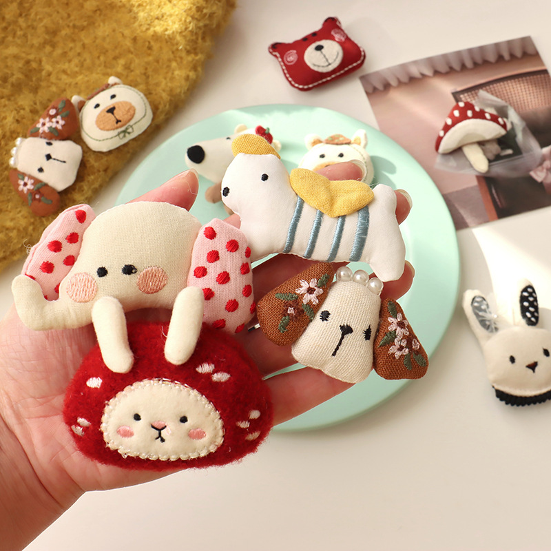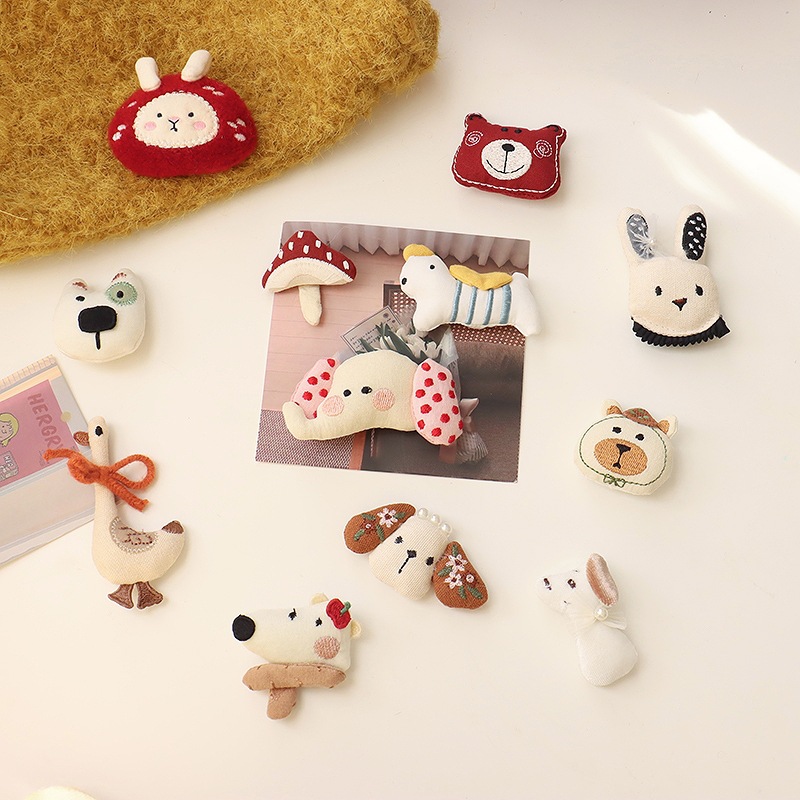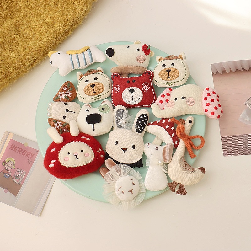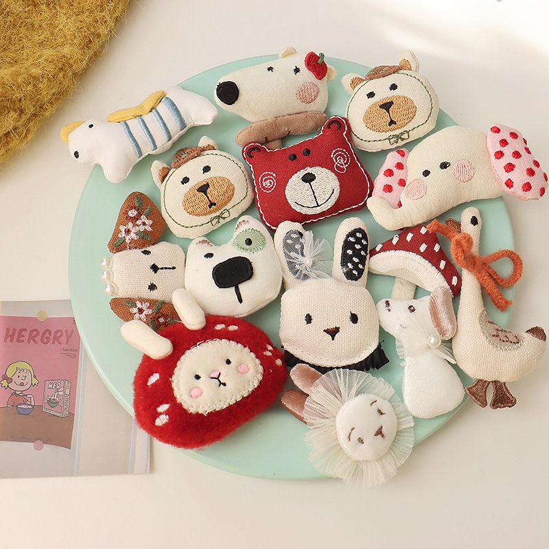 森系韩国布艺小熊胸针配饰可爱小狗小象头饰发夹diy少女心配件
