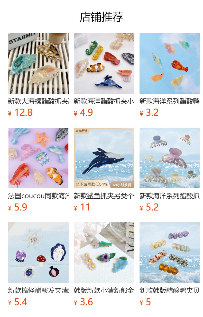 新款海洋系列醋酸鸭夹水母发夹海螺侧边夹卡通碎发夹可爱海星发饰