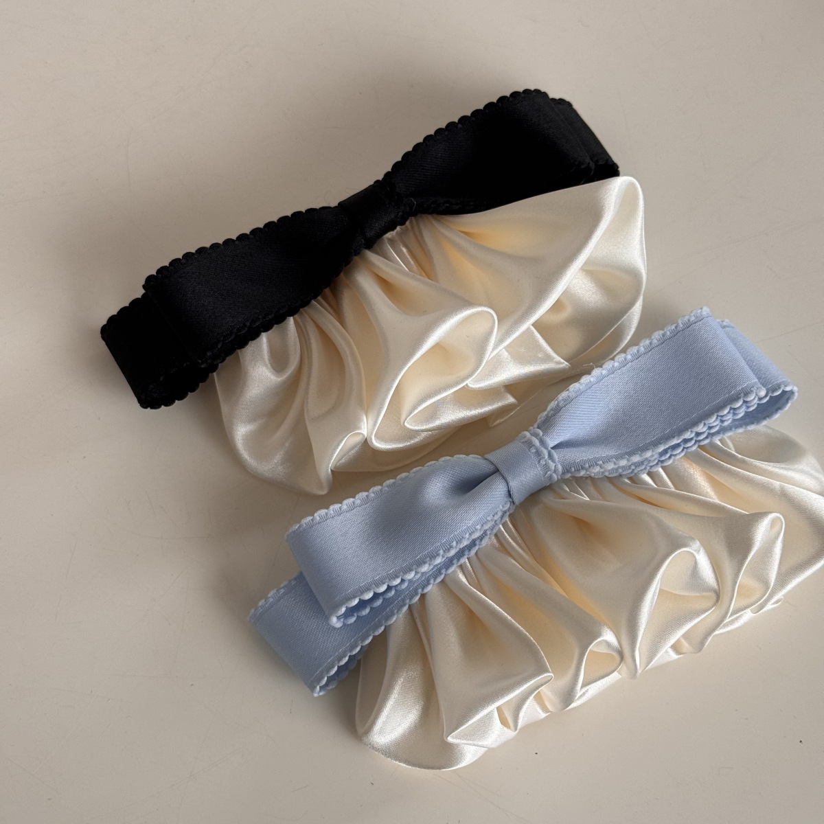 法式复古褶皱边裙摆蝴蝶结弹簧夹多气质发夹甜美顶夹发饰新款