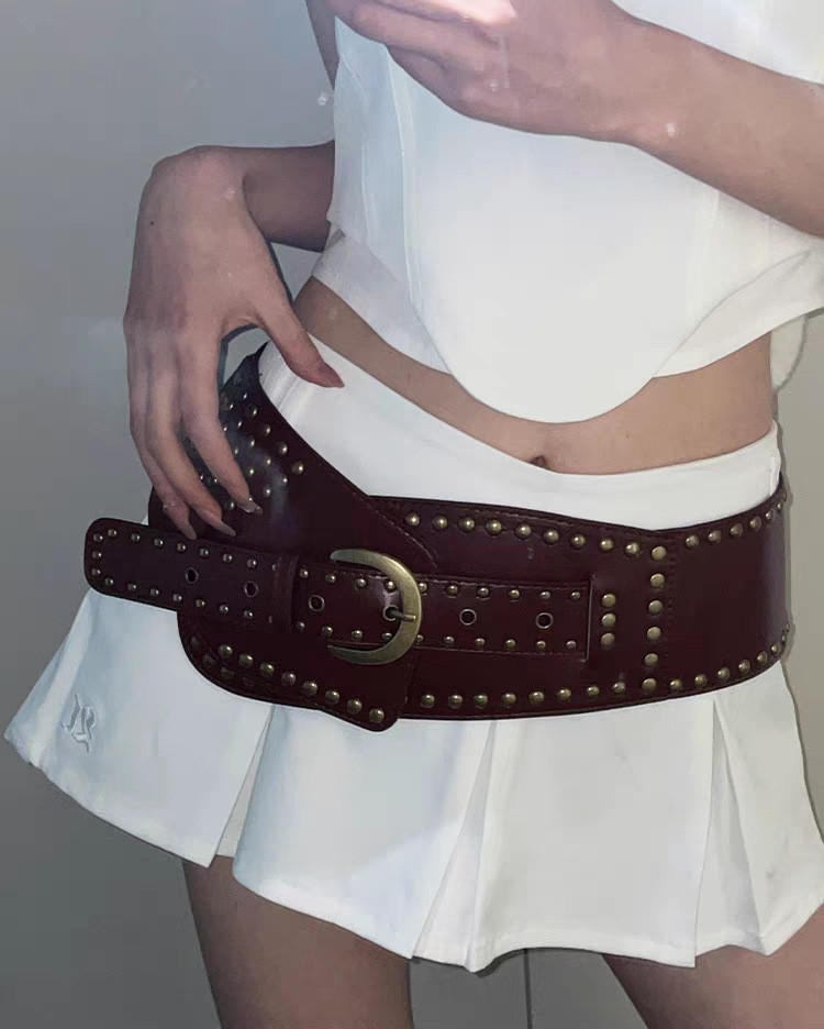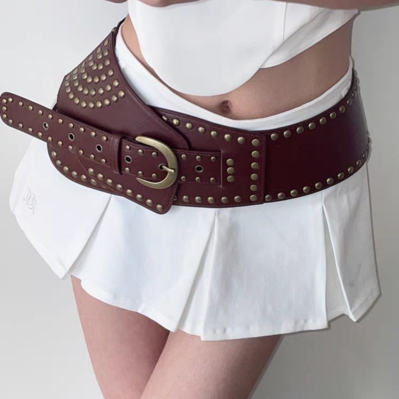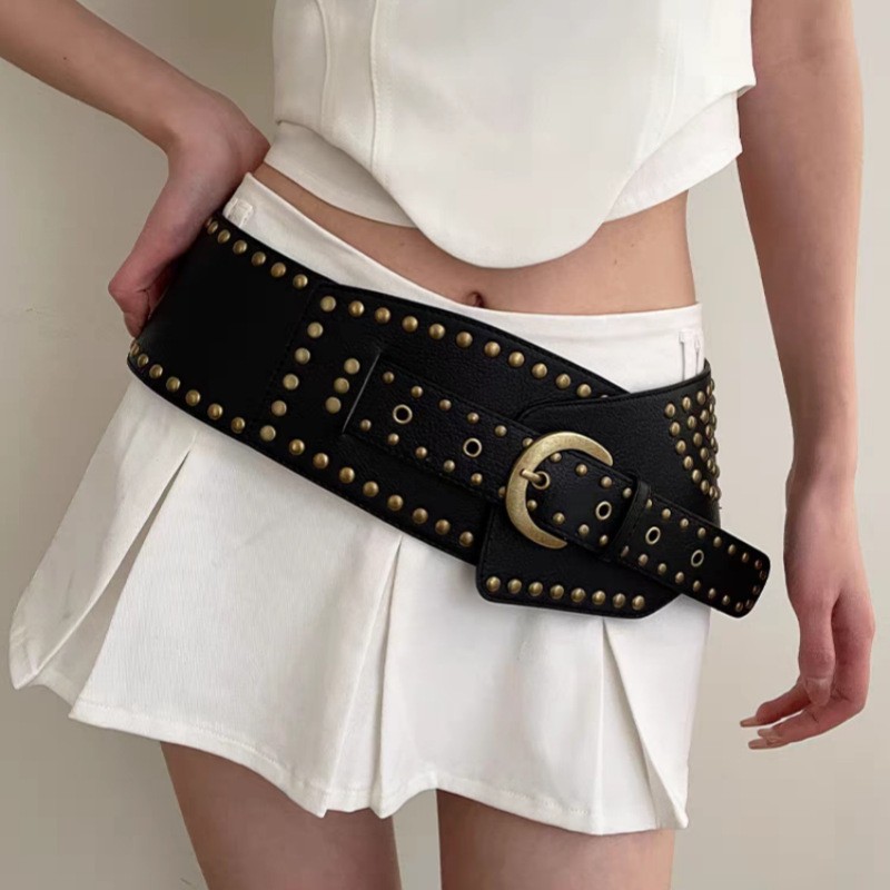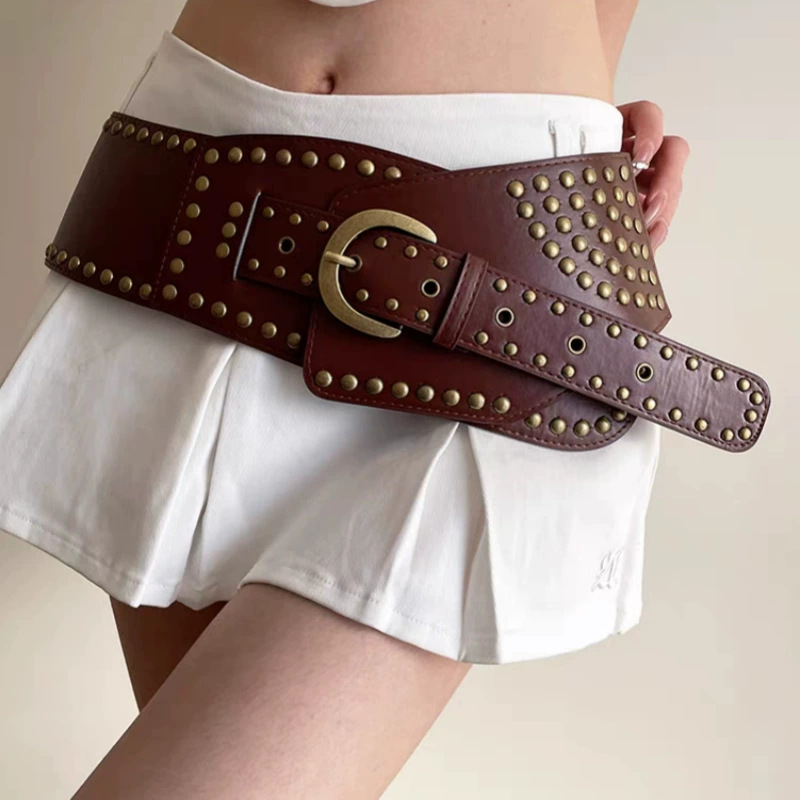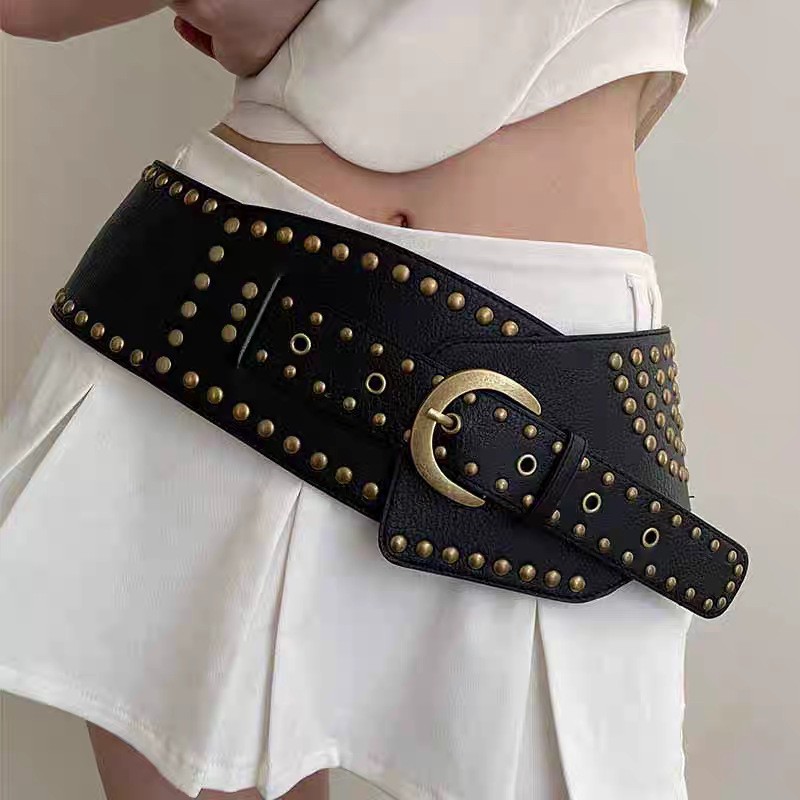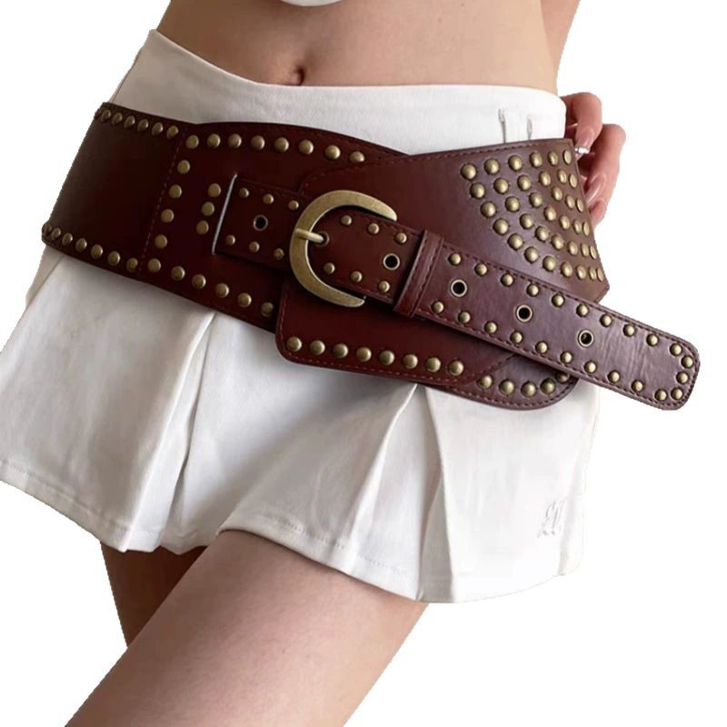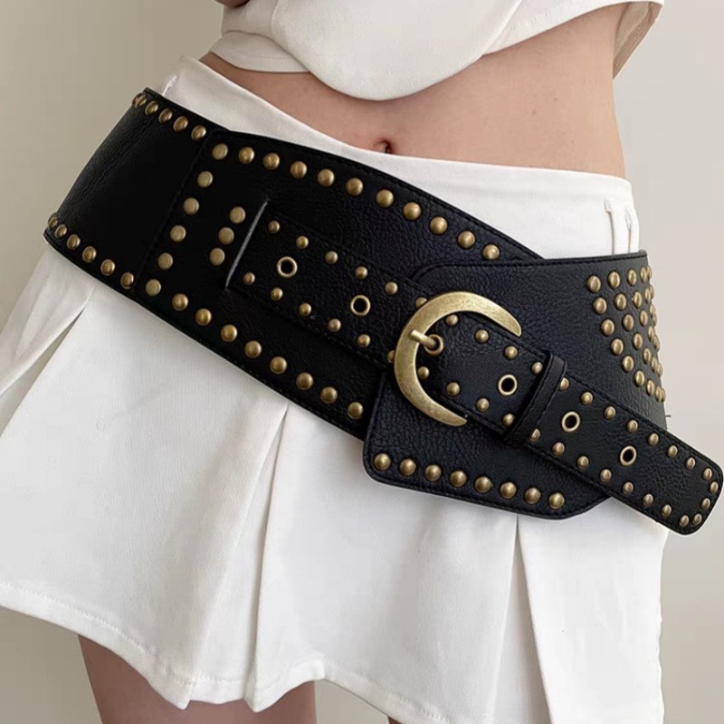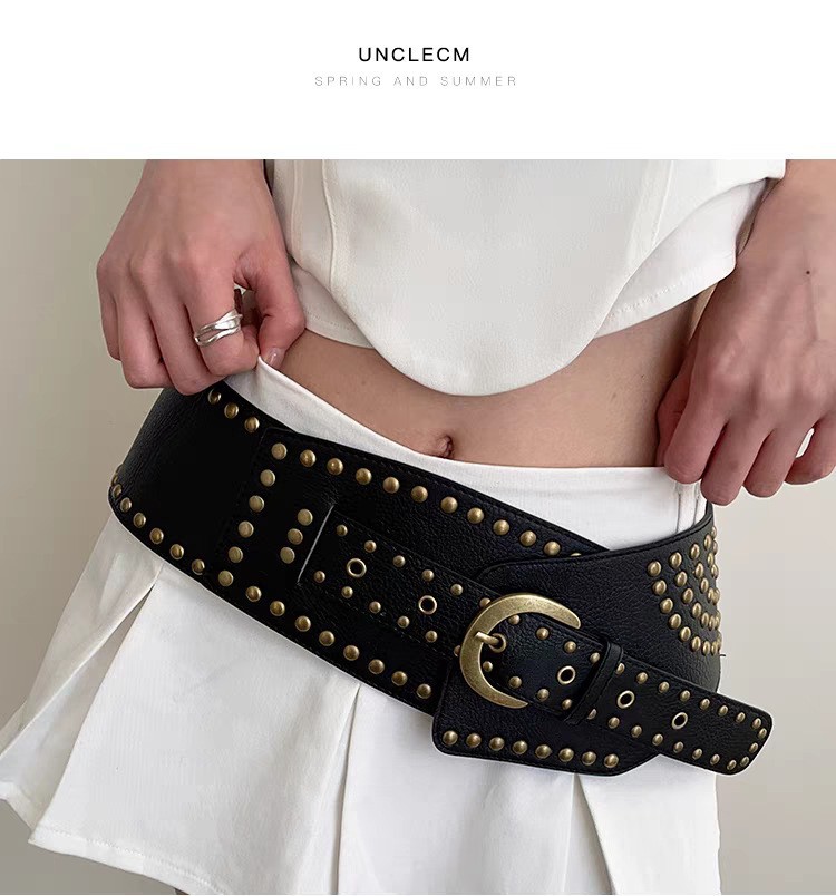 腰封女士 铆钉拼接中古辣妹复古欧美宽腰带朋克嘻哈 男女通用腰带