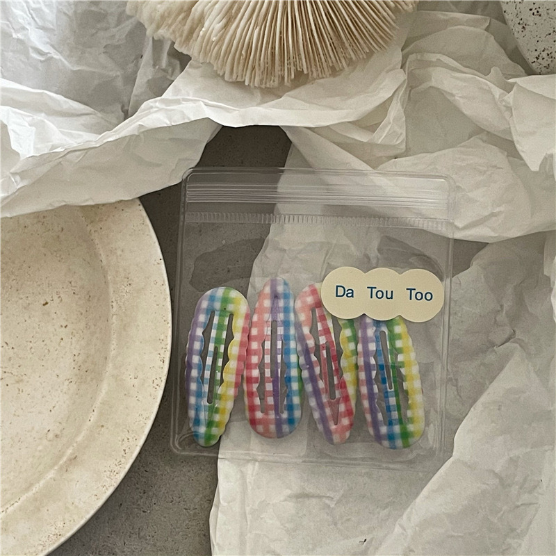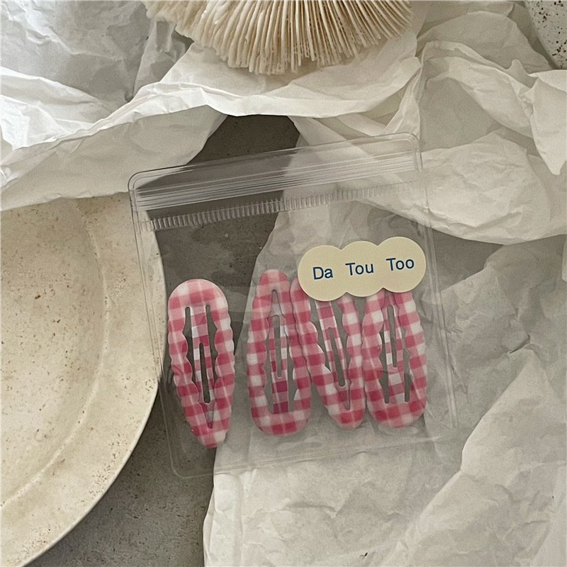 儿童发饰简约格子发夹女童宝宝可爱碎花夹水滴刘海夹洋气撞色BB夹