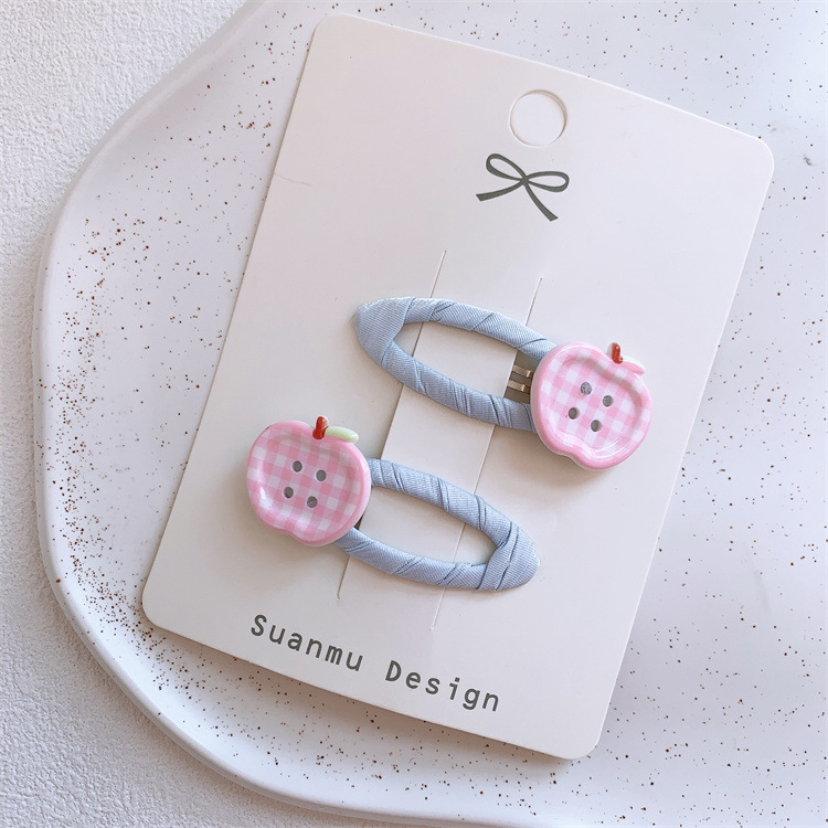 新款儿童纽扣苹果发夹甜美女童侧边刘海夹子宝宝碎发BB夹发卡头饰