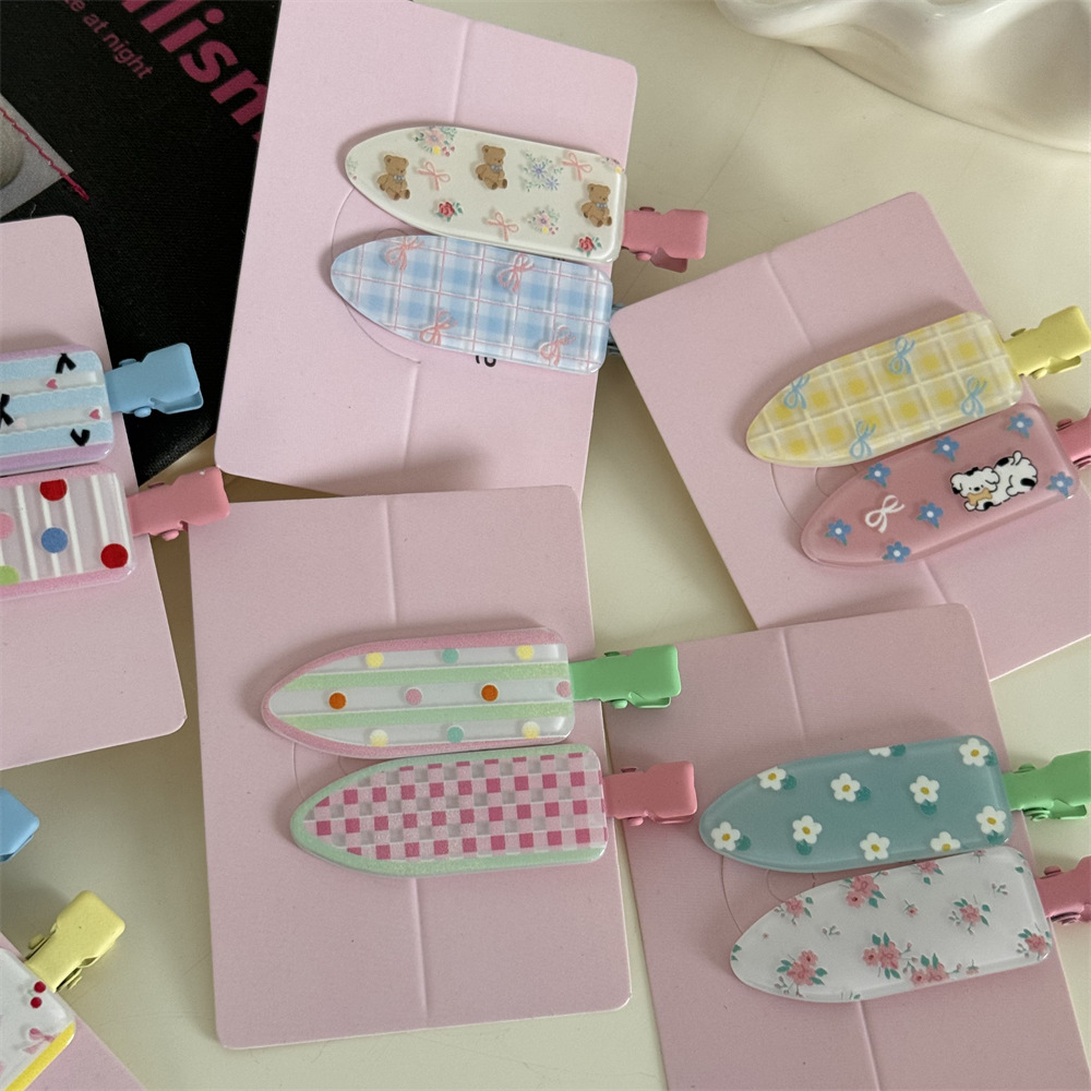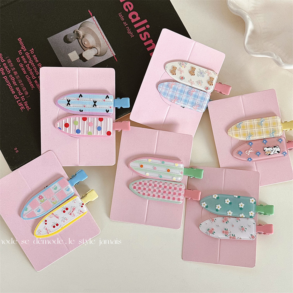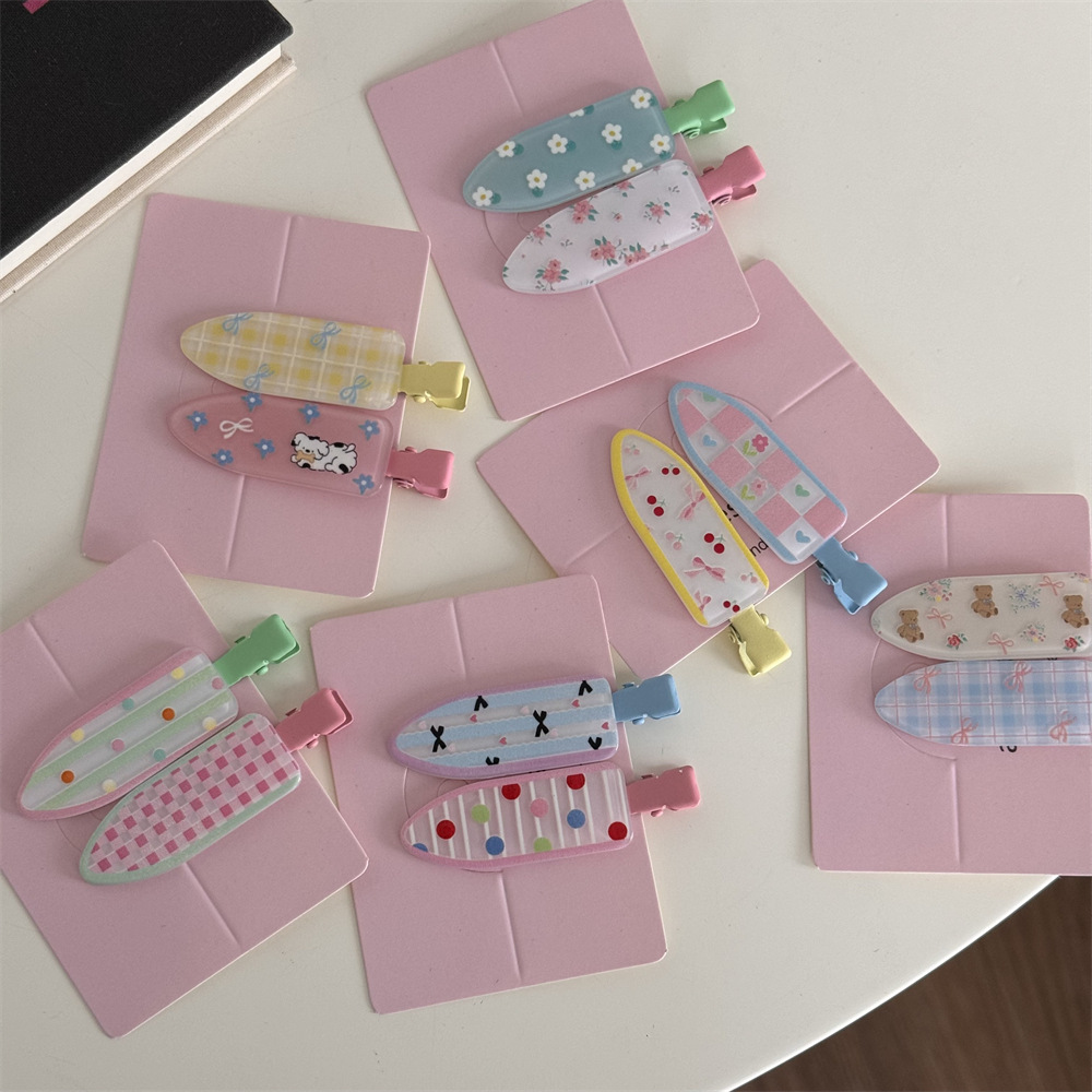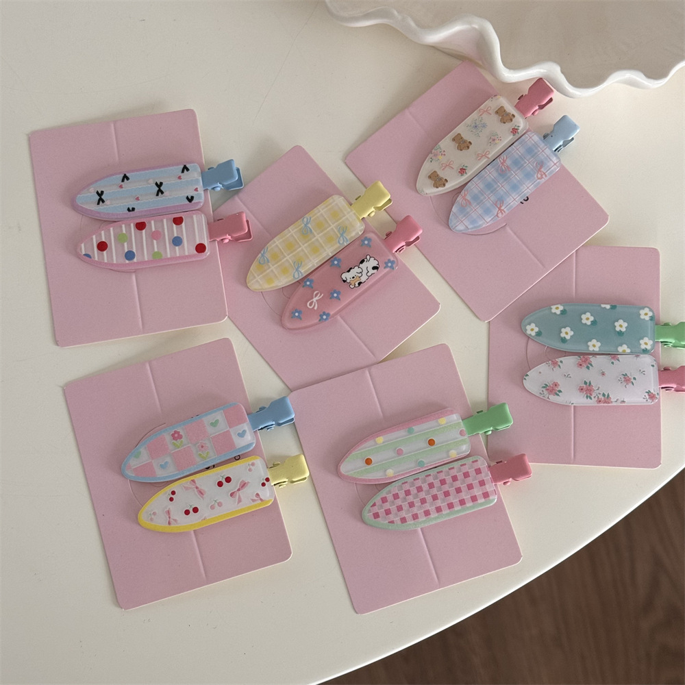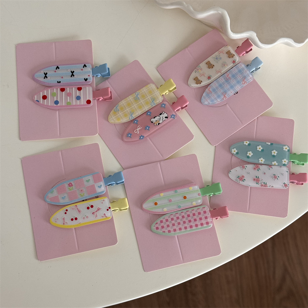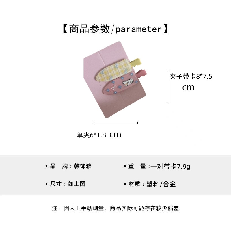 一对装少女心可爱碎花化妆夹波点鸭嘴夹无痕发夹刘海夹发饰新款