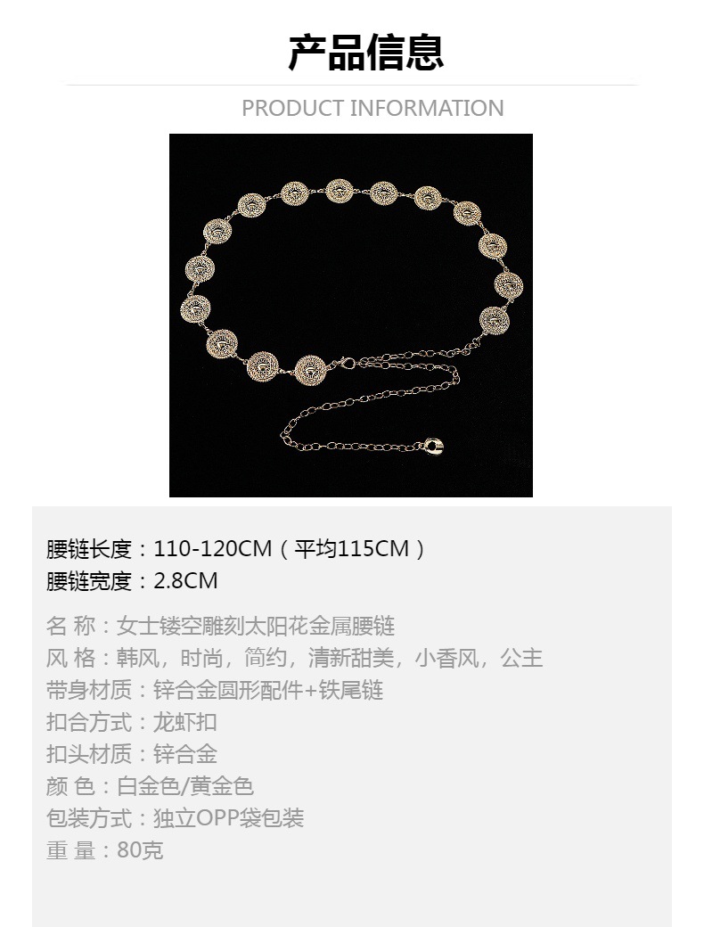 金属腰链女款高级感复古镂空雕花圆盘连衣裙腰带女士百搭装饰裤链