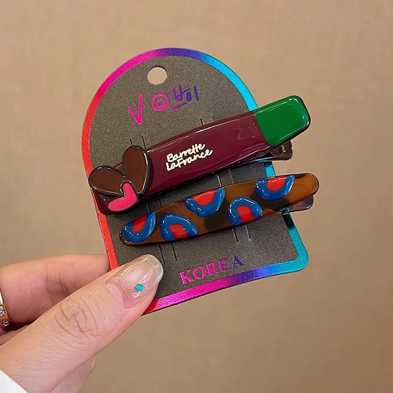 多巴胺彩色AB版爱心发夹边夹侧边刘海夹鸭嘴夹发卡女2025新款发饰