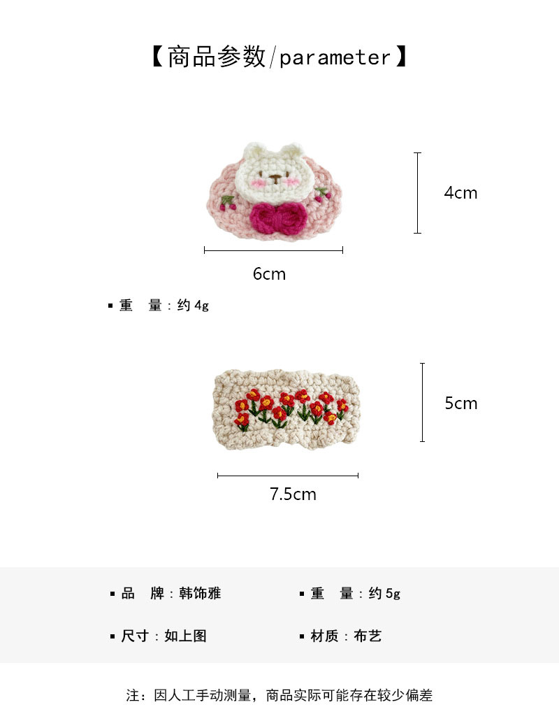 钩针编织手工毛线刺绣清新可爱甜美彩色花朵发夹侧边刘海BB夹发饰