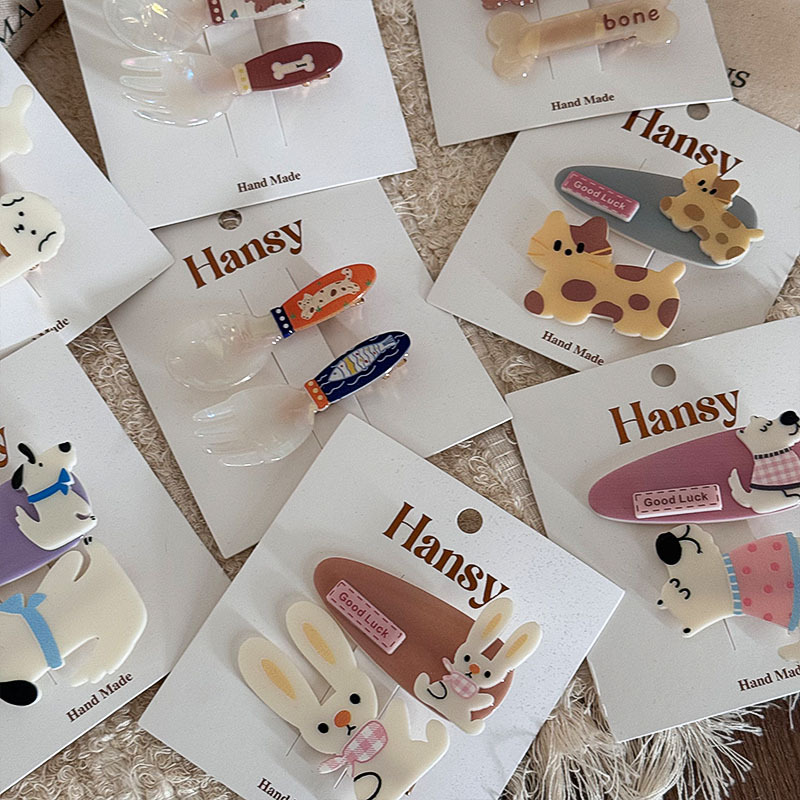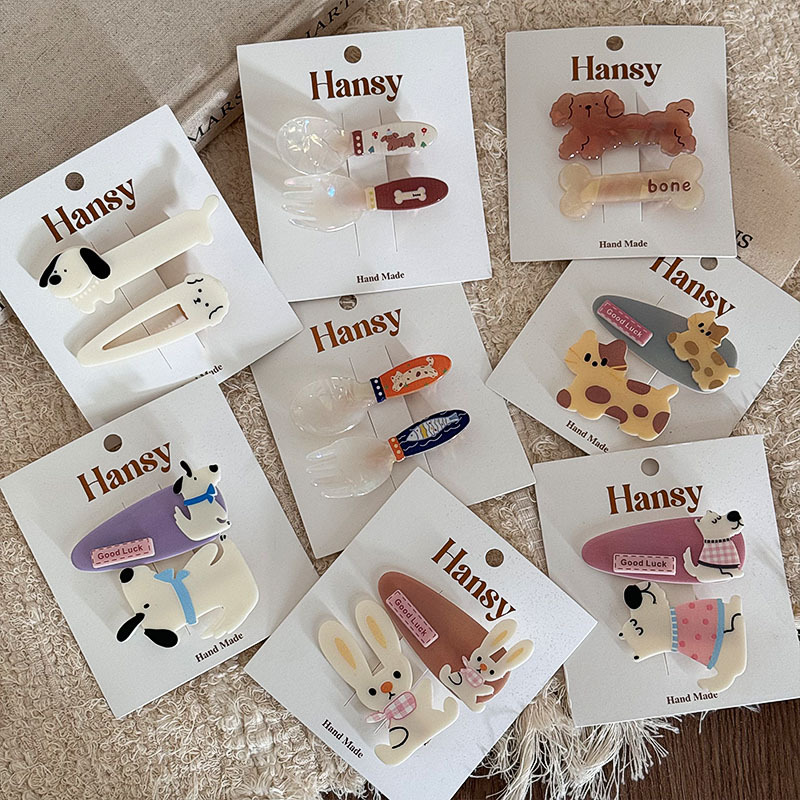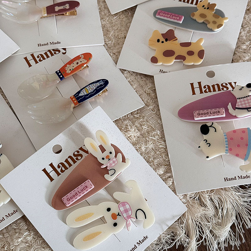 2只装卡通可爱发夹小兔子小熊侧边夹小猫咪小狗少女心发饰头饰