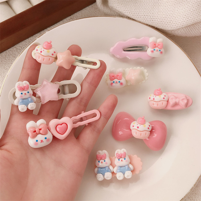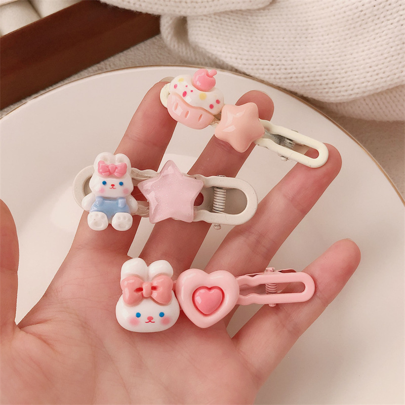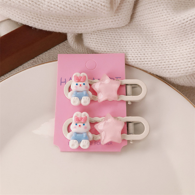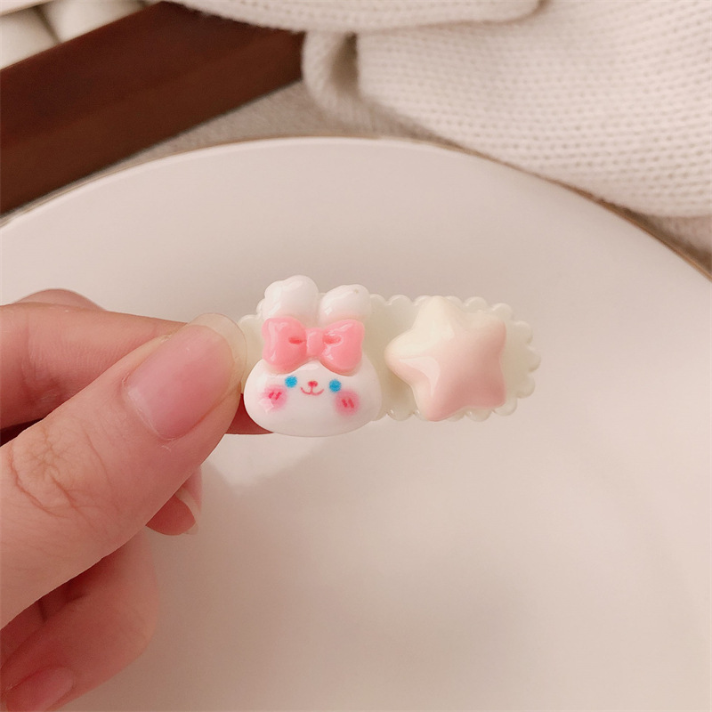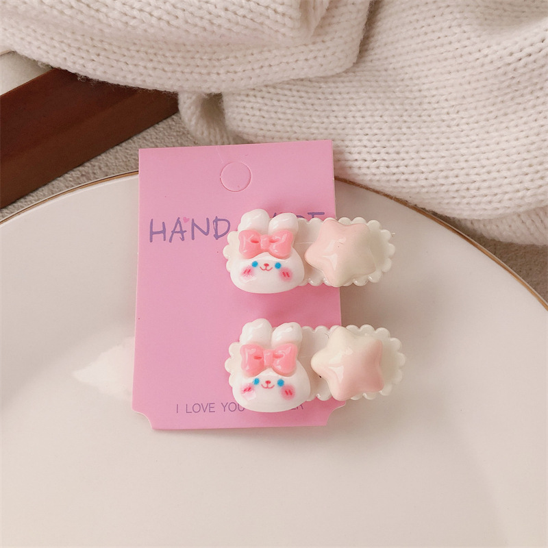 可爱粉色星星蛋糕兔子发夹少女侧边碎发前额刘海夹发卡百搭发饰