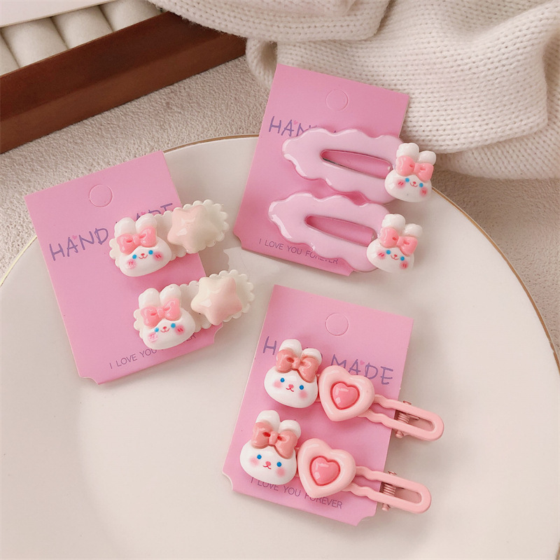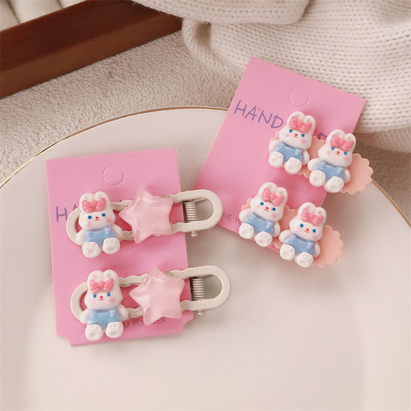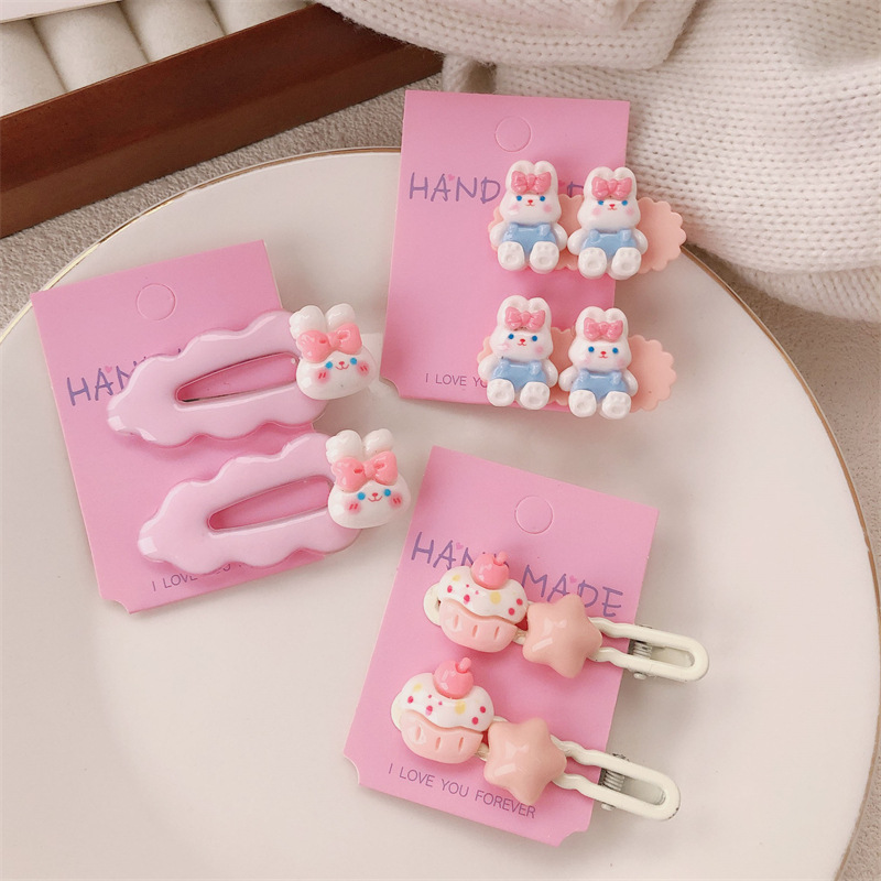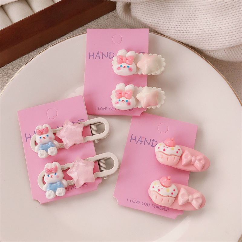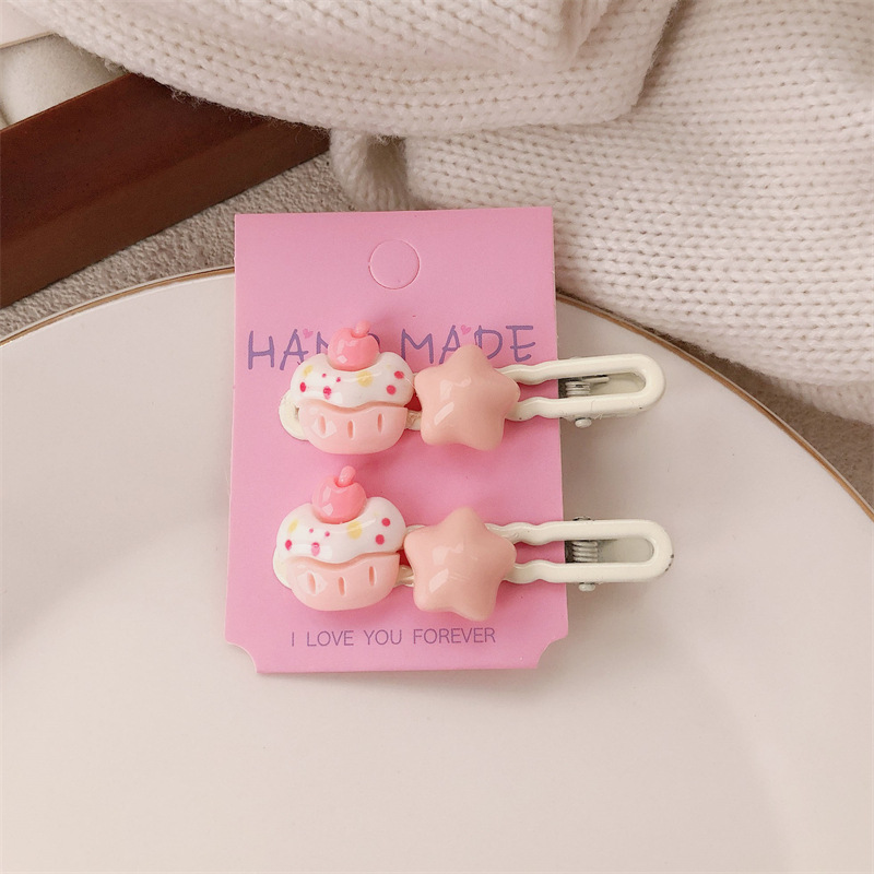 可爱粉色星星蛋糕兔子发夹少女侧边碎发前额刘海夹发卡百搭发饰