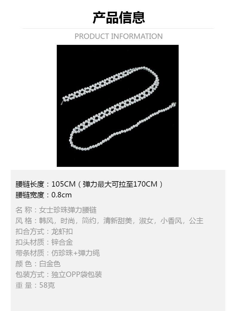 珍珠腰链女款高级感百搭装饰弹力珍珠裤链女士简约休闲裙子裤腰带