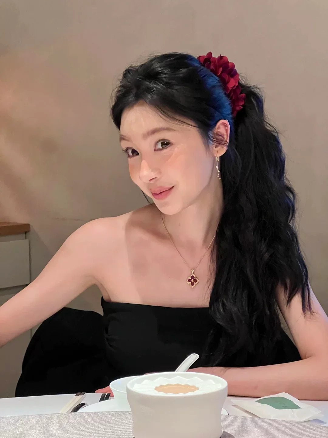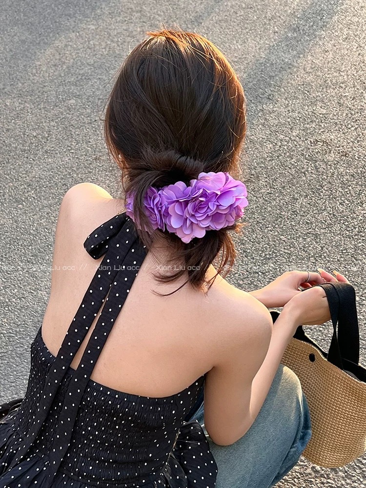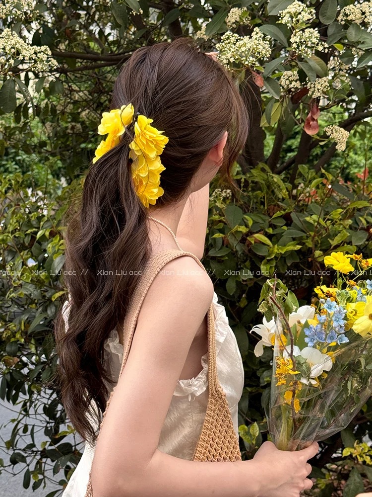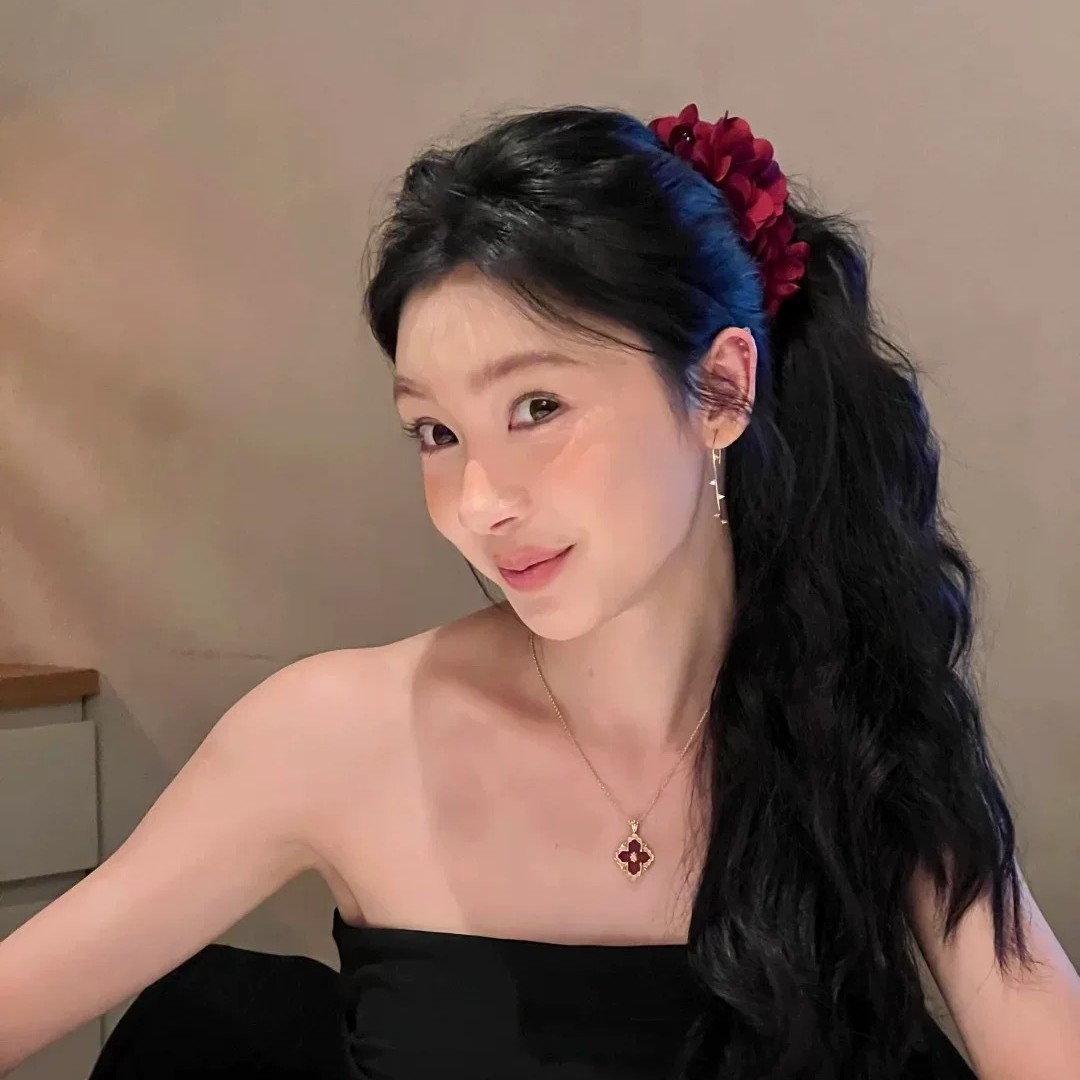 超大号!!易梦玲同款红色玫瑰花朵香蕉夹女扎高马尾发夹海边配饰