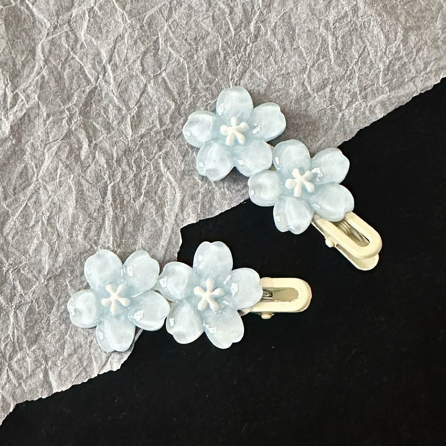 高级感蓝色果冻花朵发夹优雅甜美少女风侧边刘海发卡饰品发饰春季