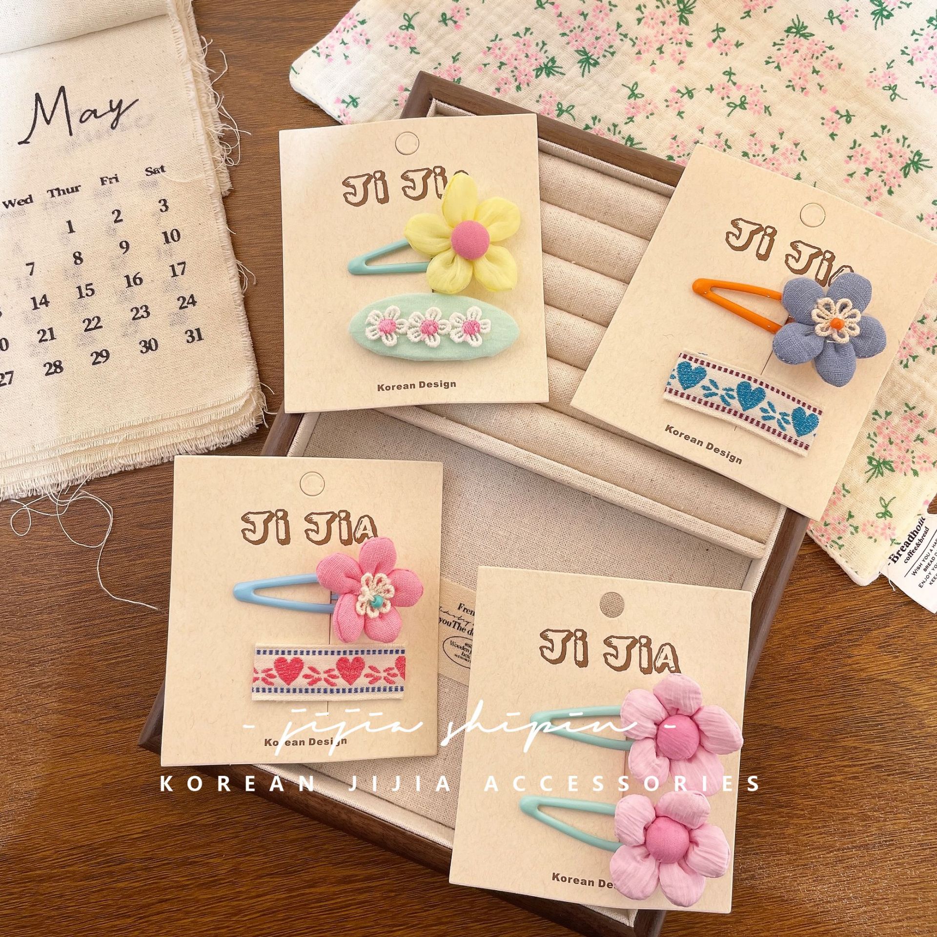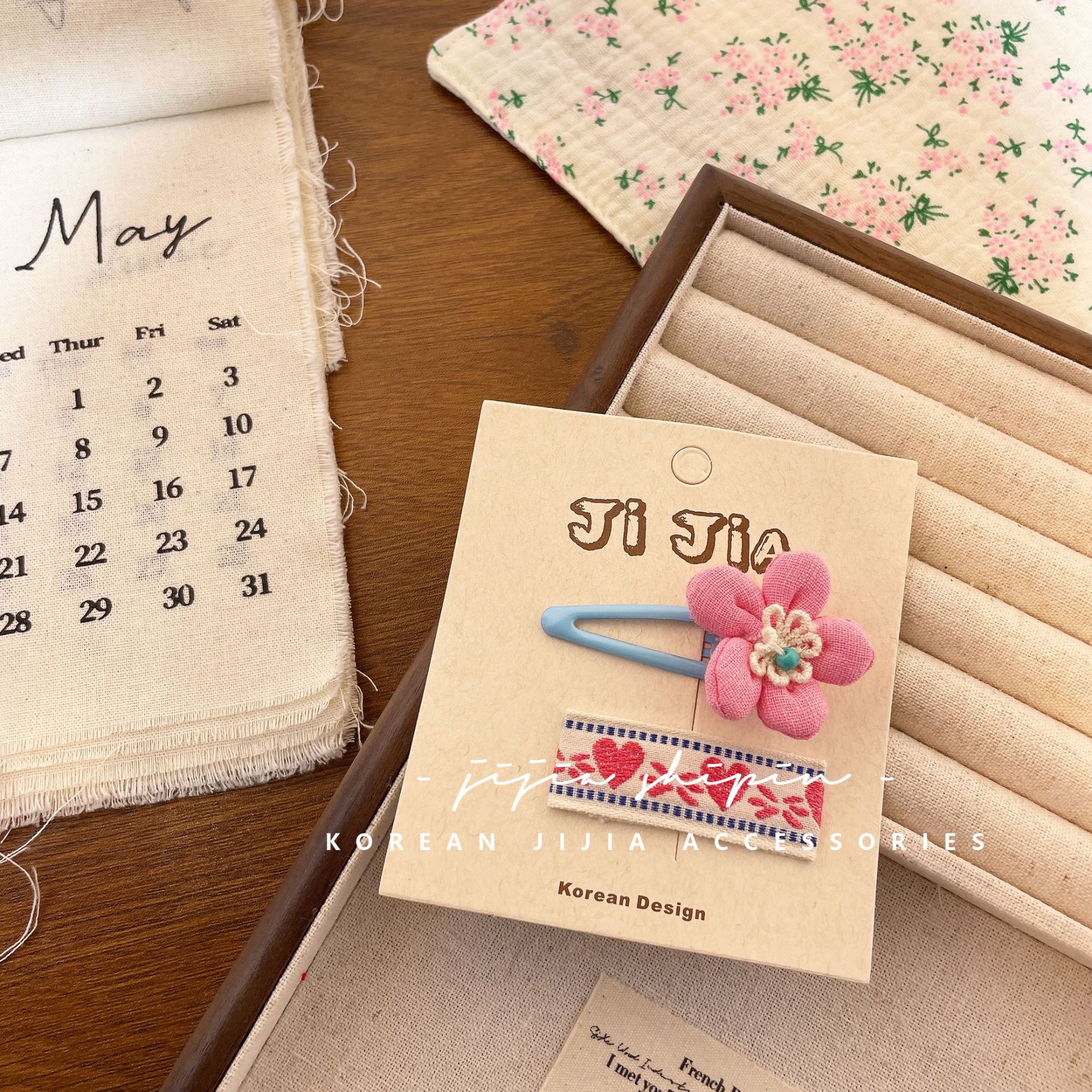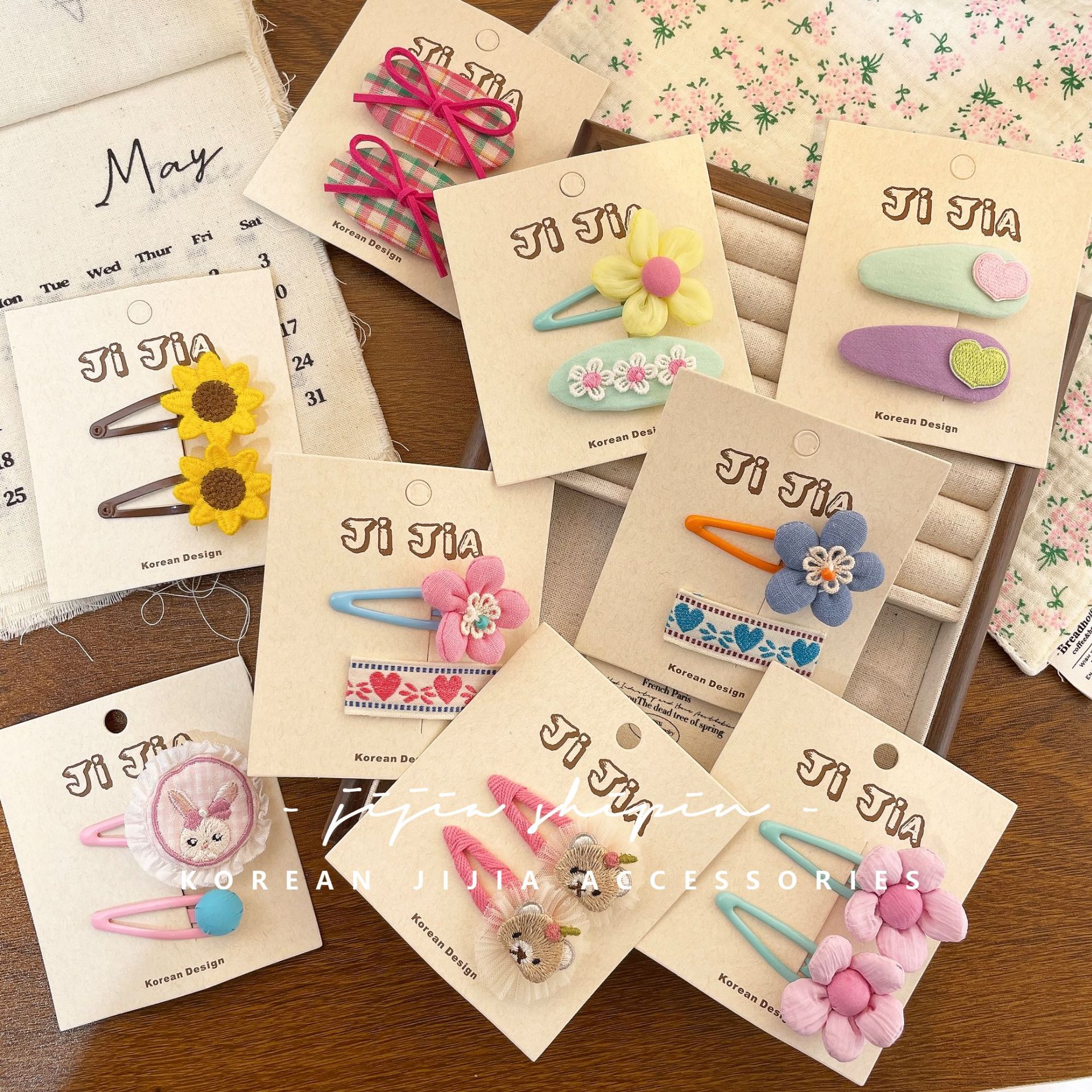 韩版甜美布艺碎花发夹可爱小兔BB夹百搭儿童碎发夹宝宝边夹发卡