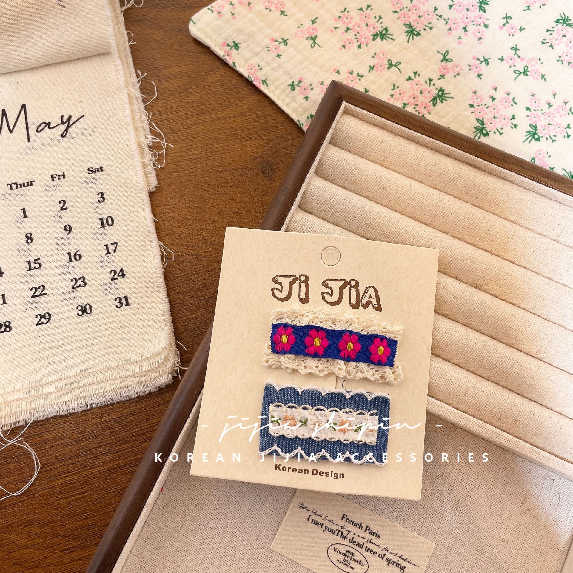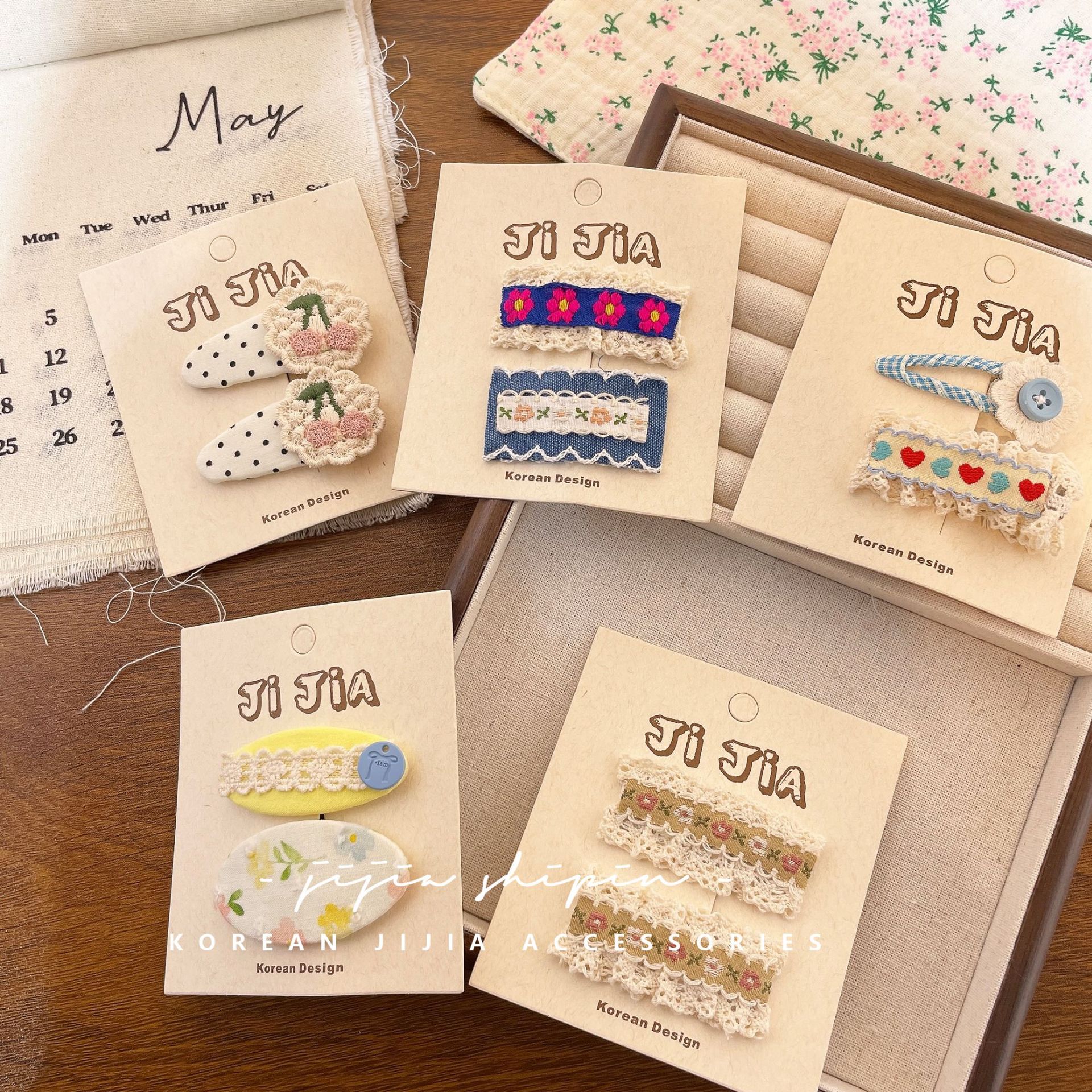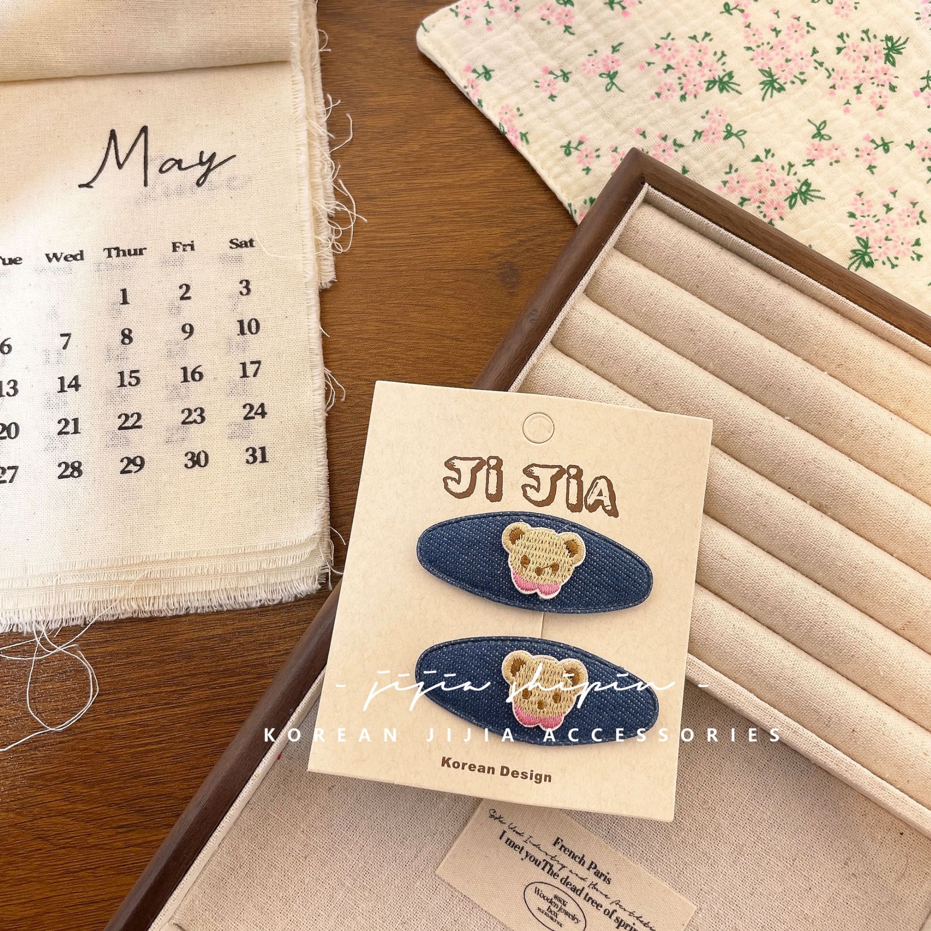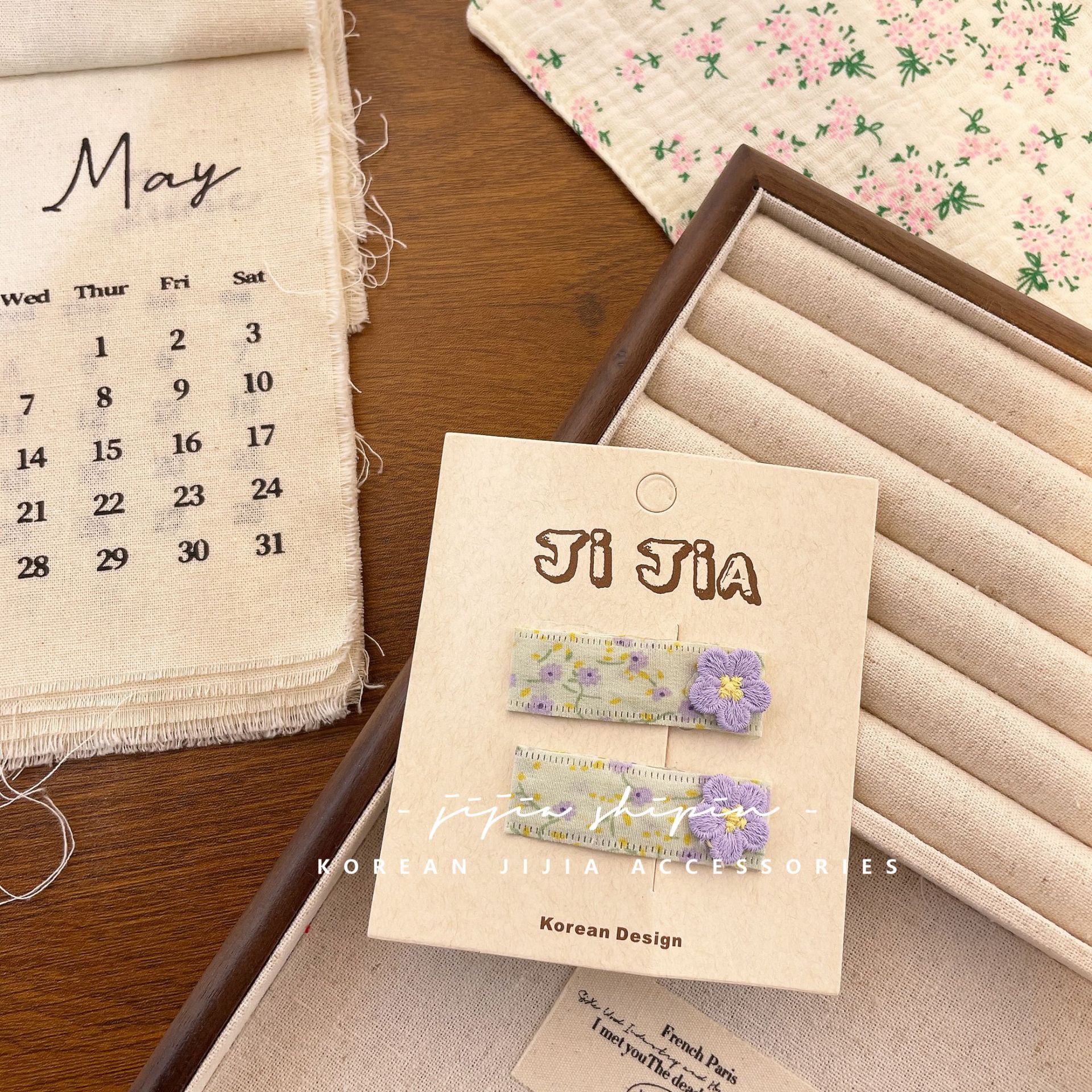 韩版甜美布艺碎花发夹可爱小兔BB夹百搭儿童碎发夹宝宝边夹发卡