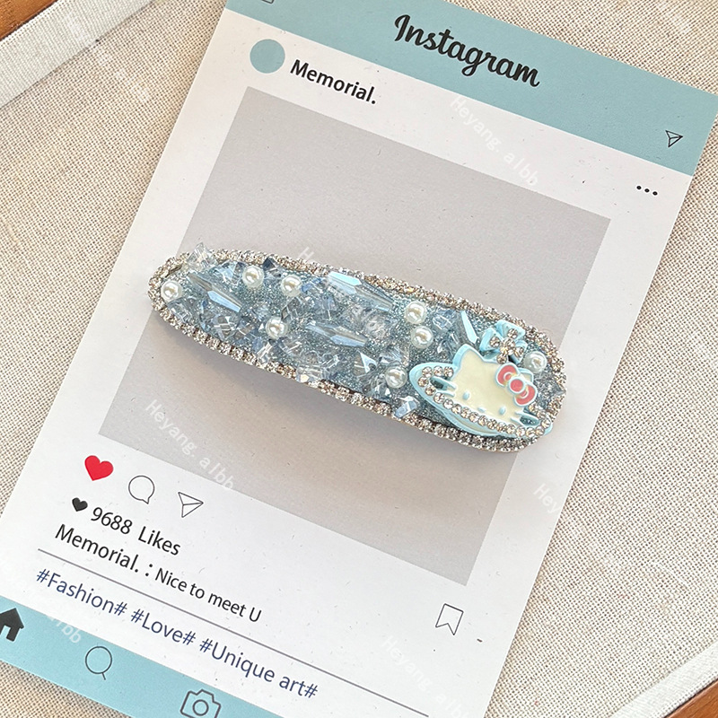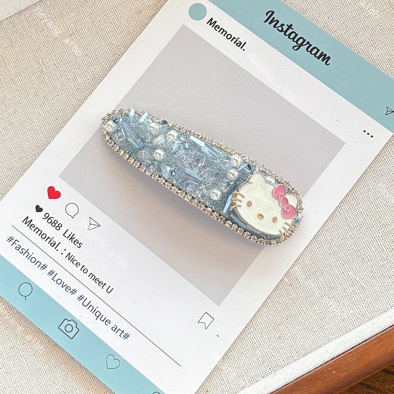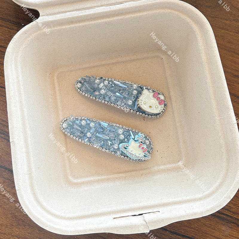 精致高级感蓝色kt猫咪发夹甜美气质少女网红刘海侧边夹发卡发饰