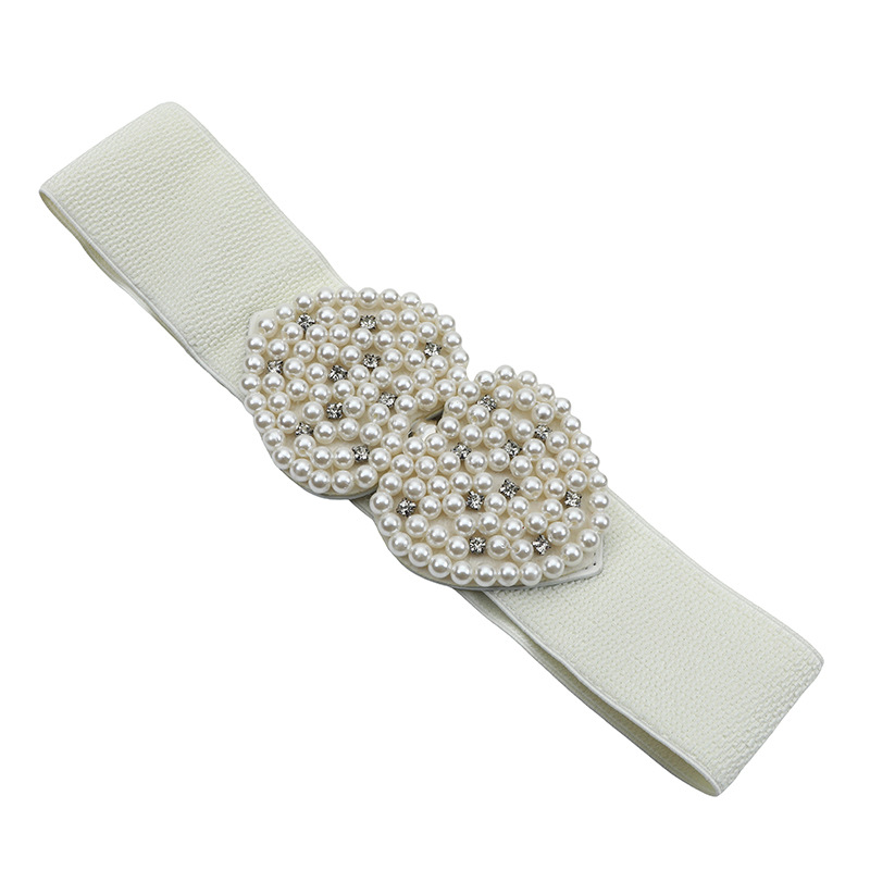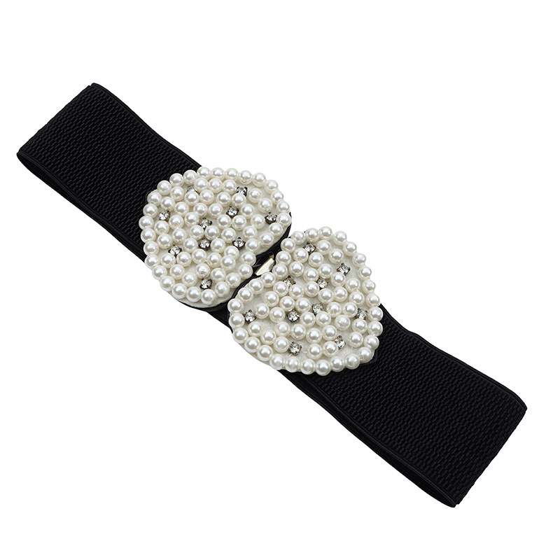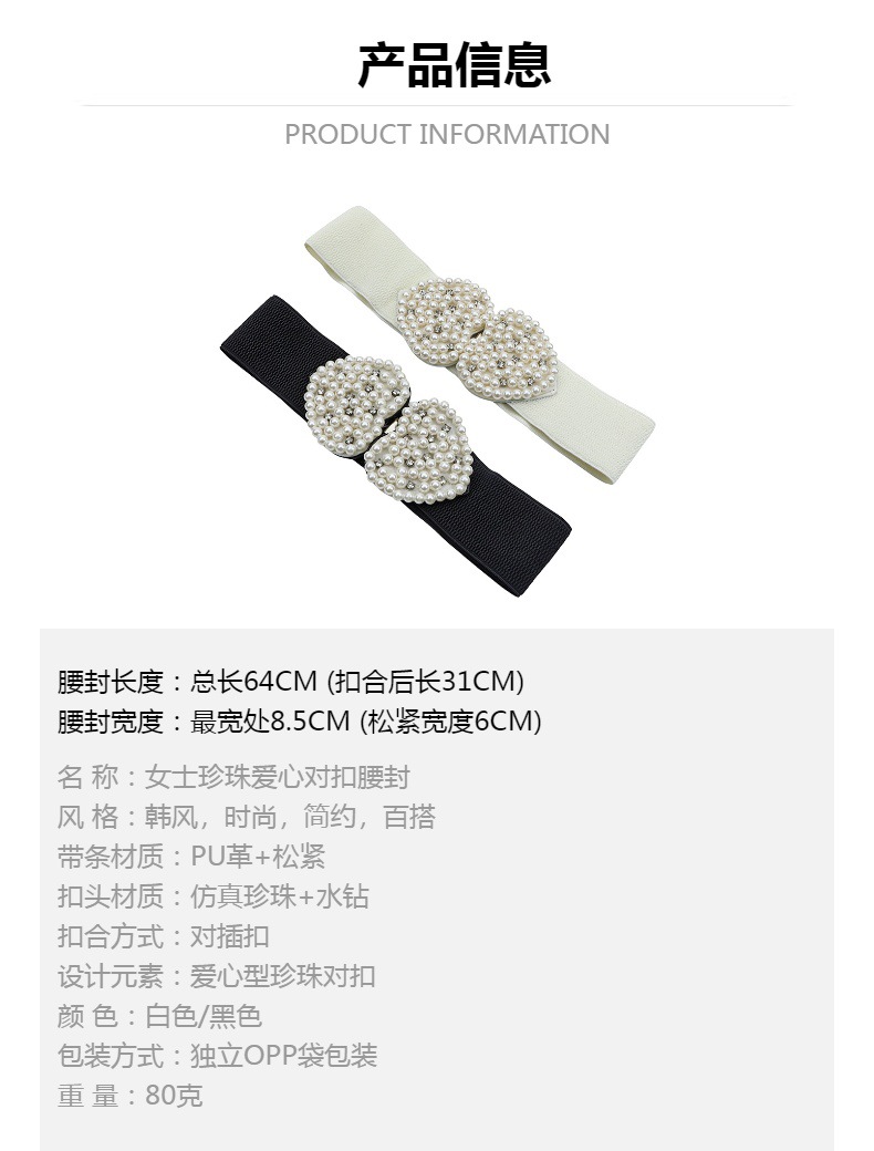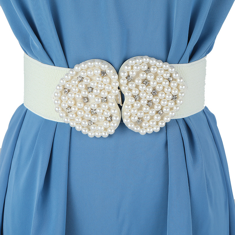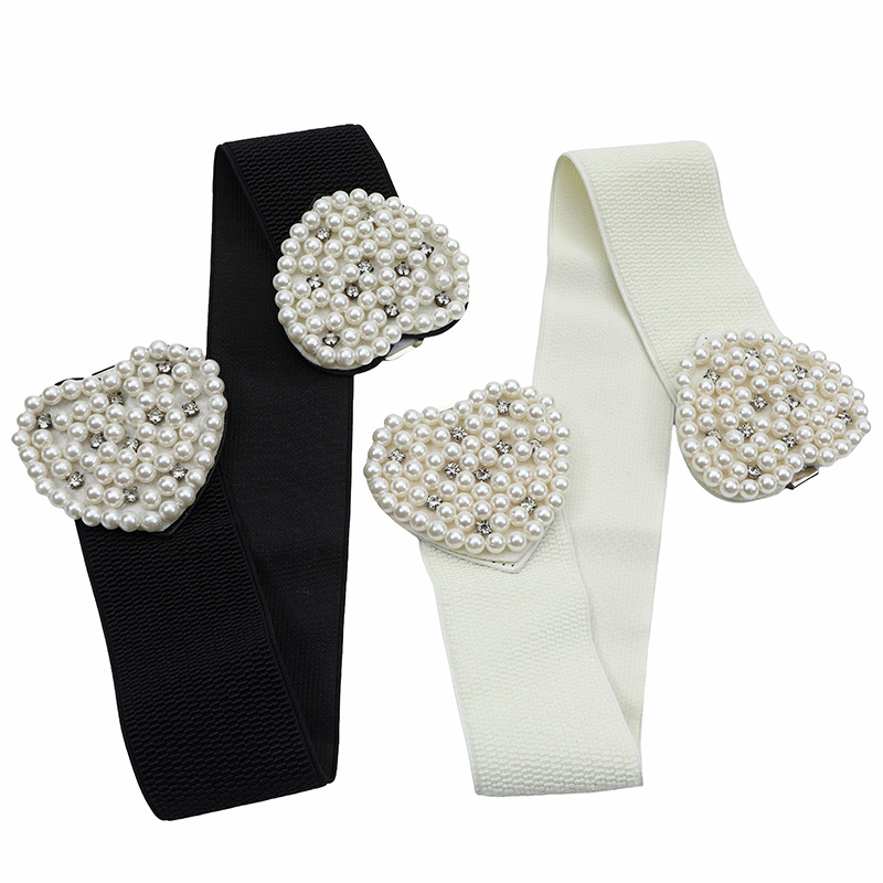 腰封女束腰外穿爱心珍珠镶钻对扣松紧宽腰带法式百搭装饰大衣腰封