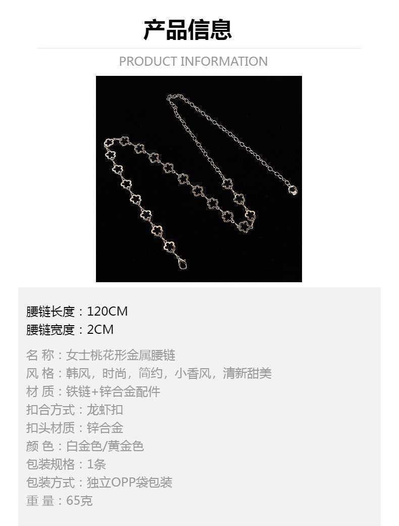 腰链女款高级感裙子腰带女百搭装饰桃花型金属裤链时尚腰饰品批发