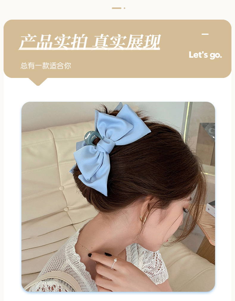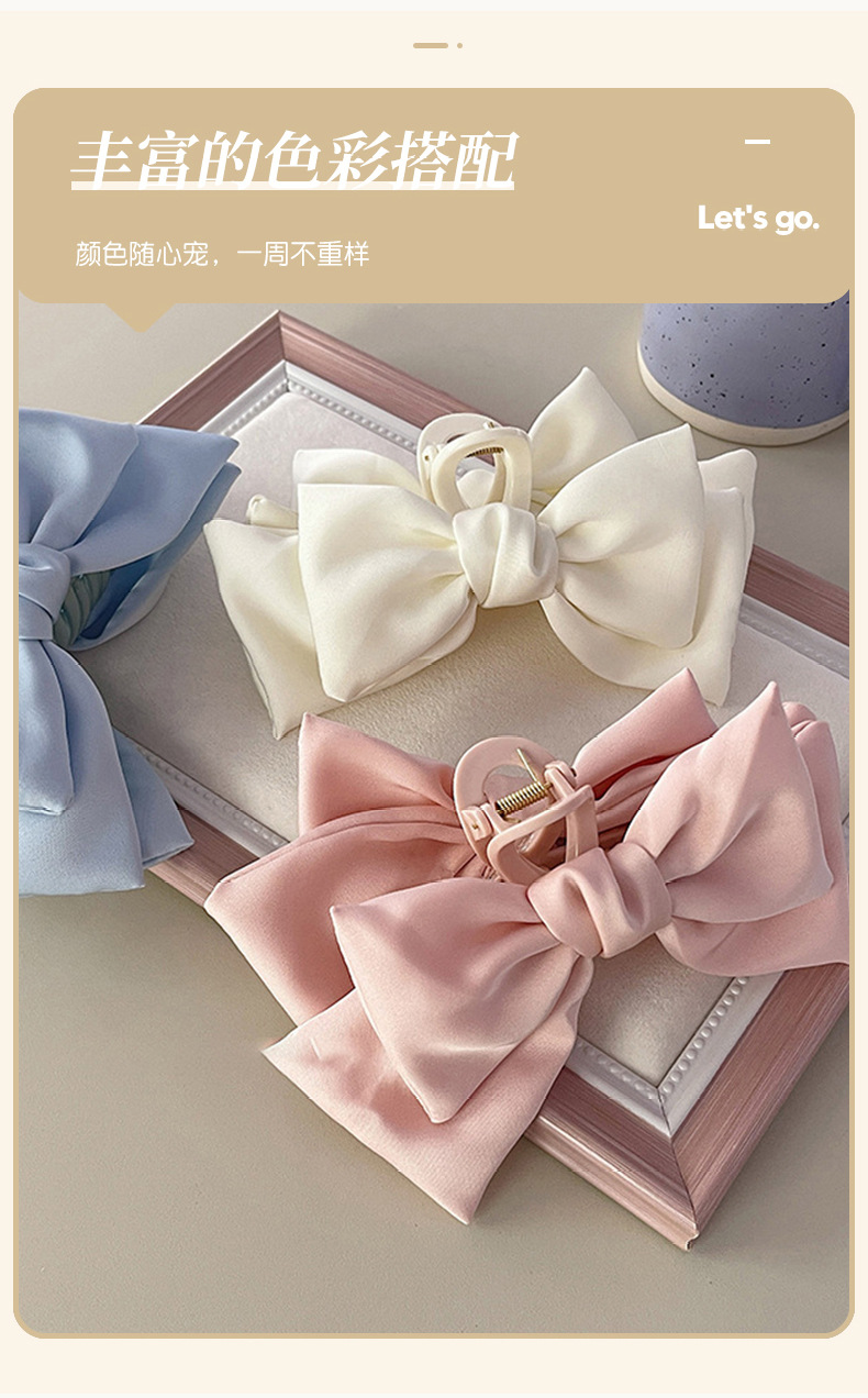 黑色复古缎面大蝴蝶结头饰发夹女新款弹簧夹后脑勺发卡顶夹