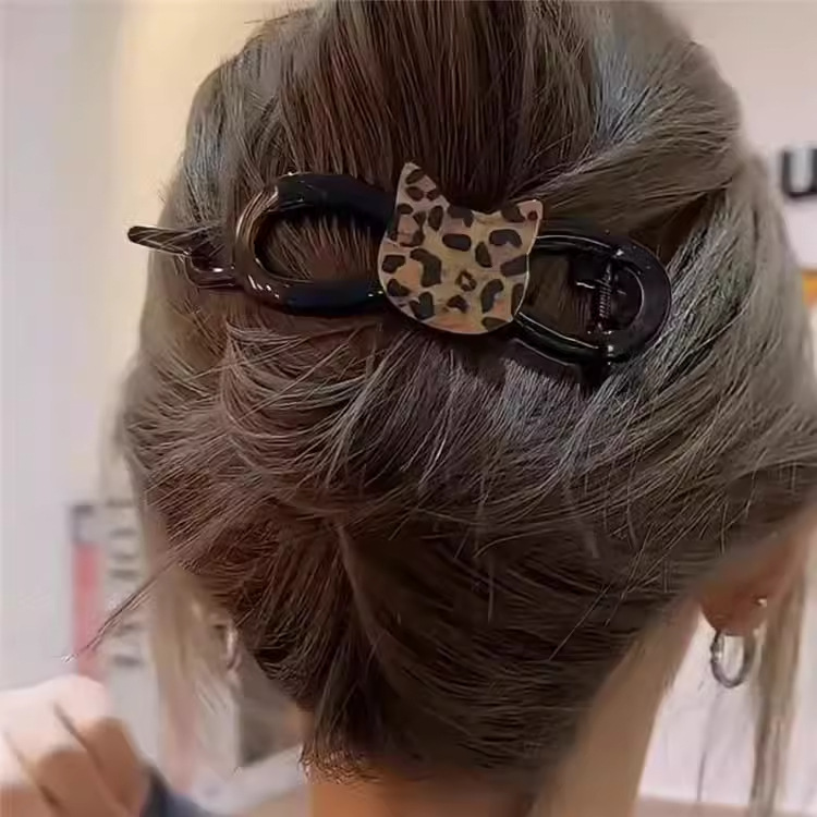 萌趣可爱豹纹猫咪扭扭夹高级感后脑勺一字抓夹女盘发头饰时尚百搭