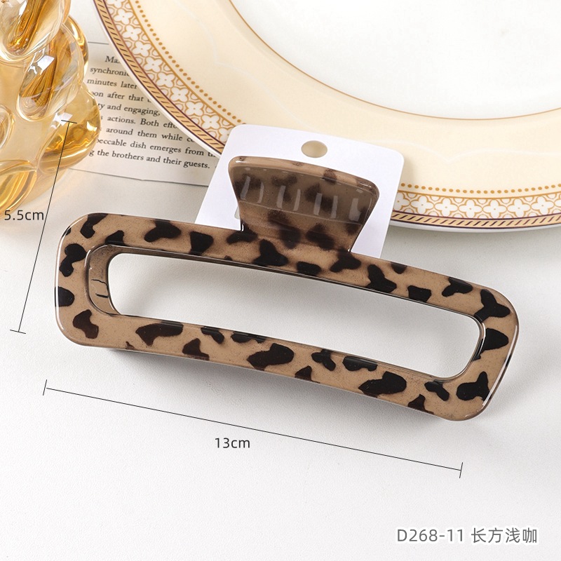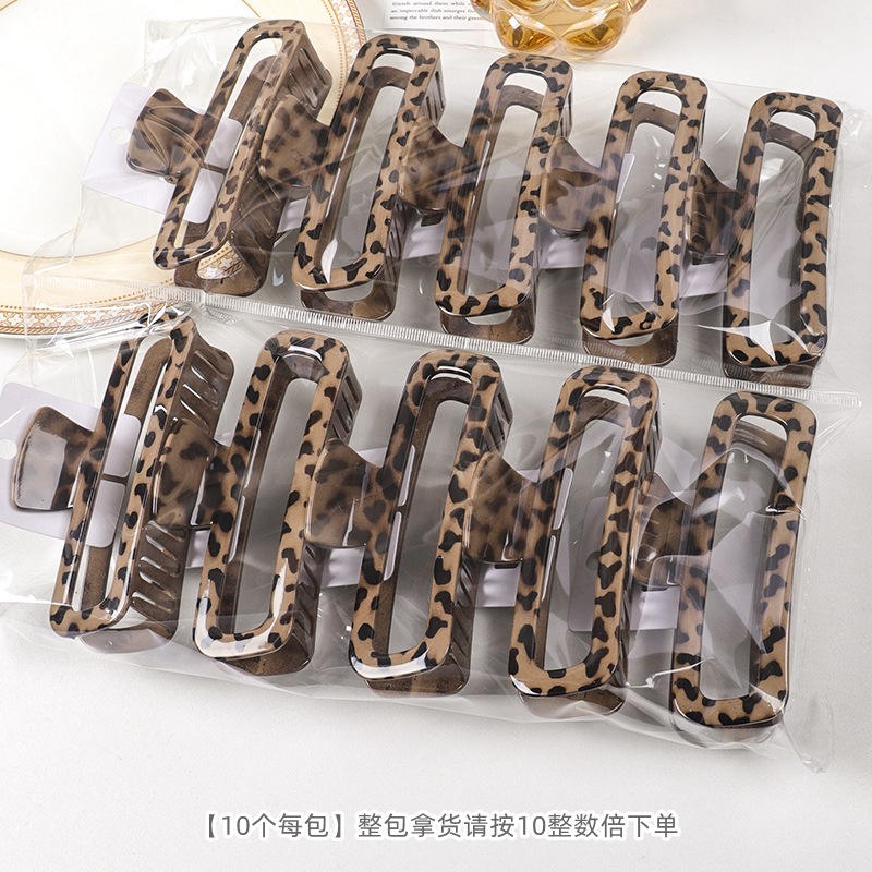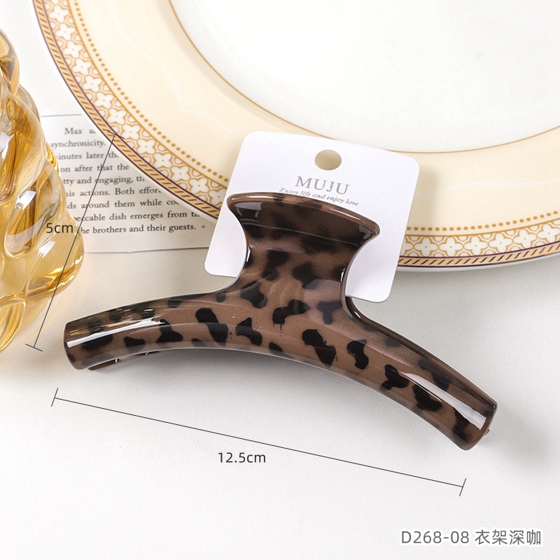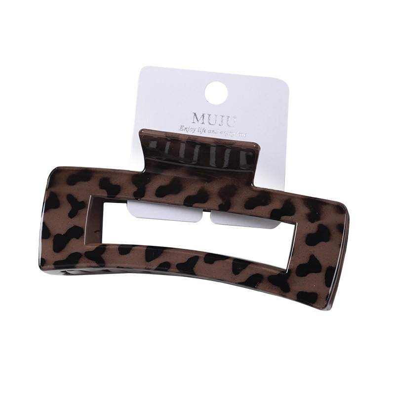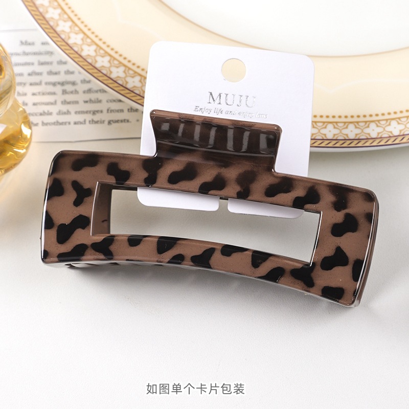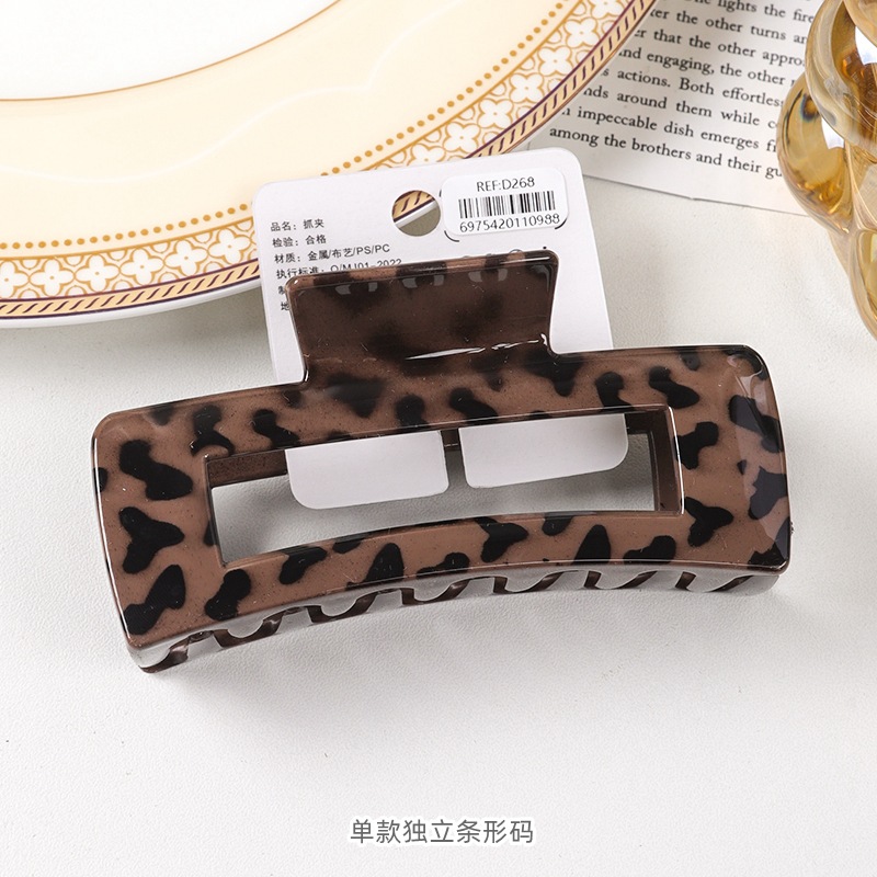 甜酷风豹纹抓夹高级感单个卡装吊牌发夹简约咖色发卡后脑勺鲨鱼夹