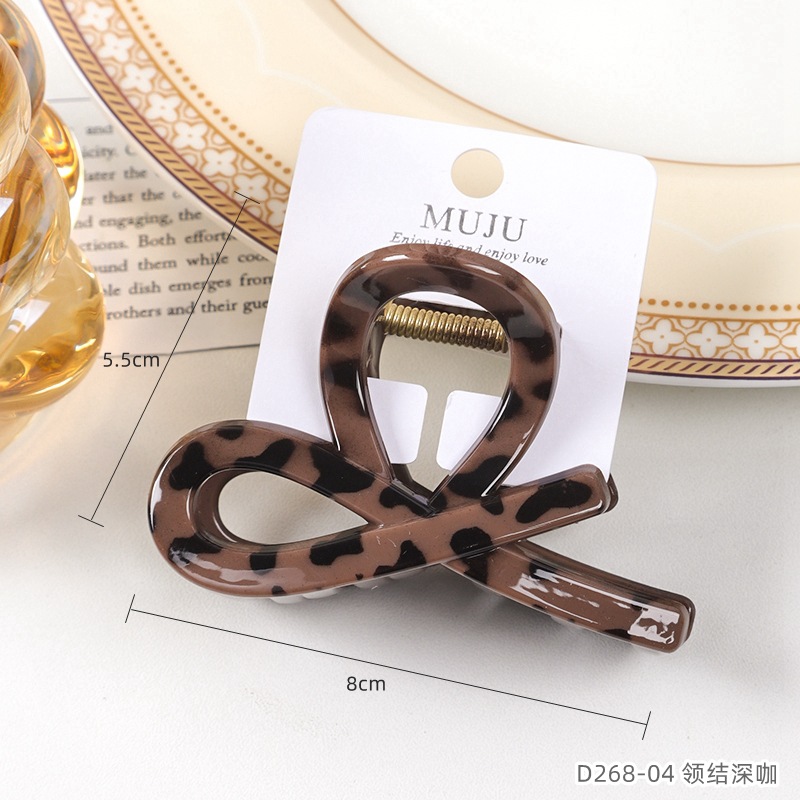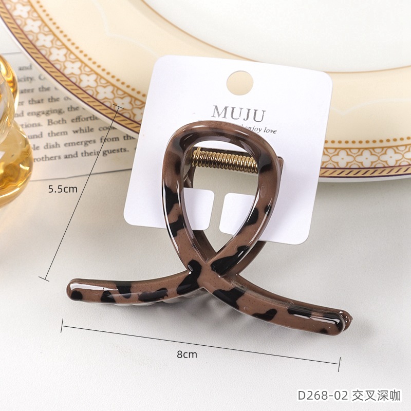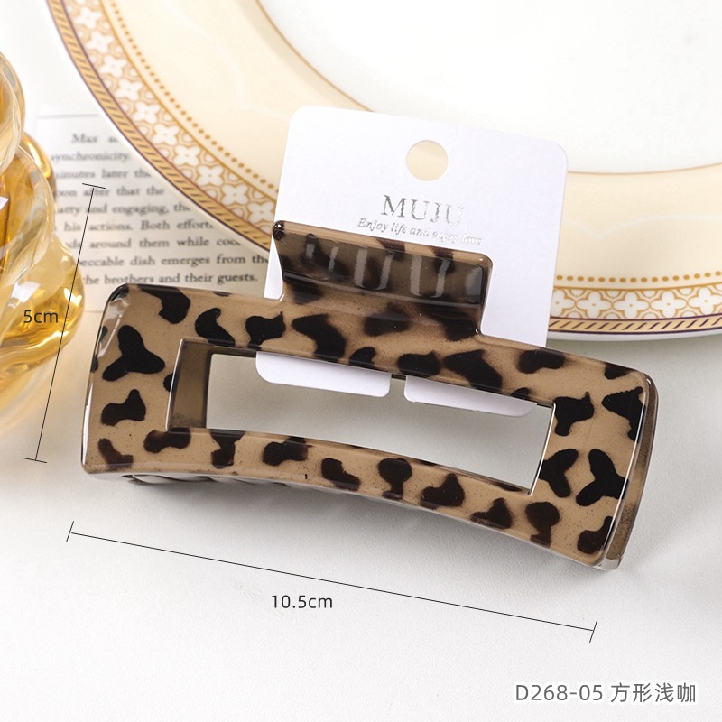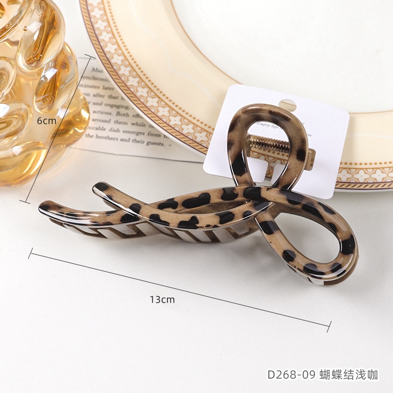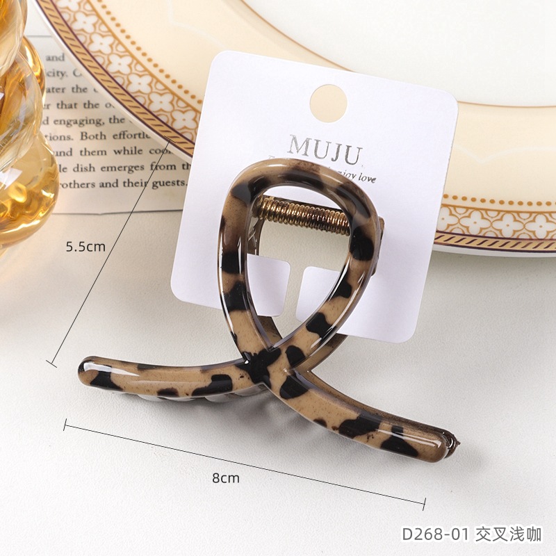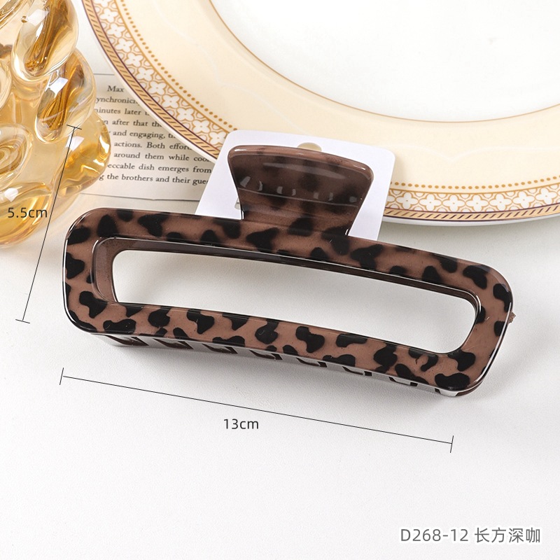 甜酷风豹纹抓夹高级感单个卡装吊牌发夹简约咖色发卡后脑勺鲨鱼夹