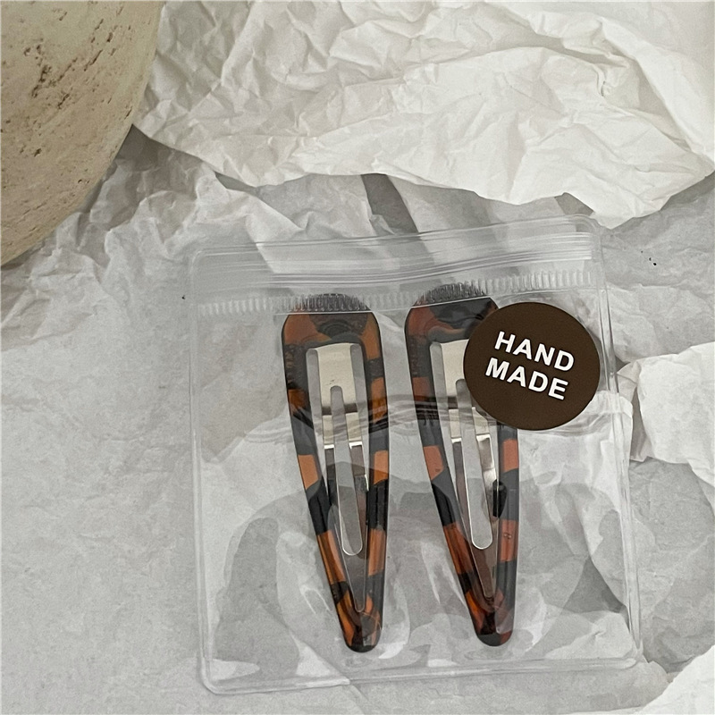 气质复古豹纹水滴滴油BB夹碎发刘海夹 可爱彩色镂空椭圆发夹对夹