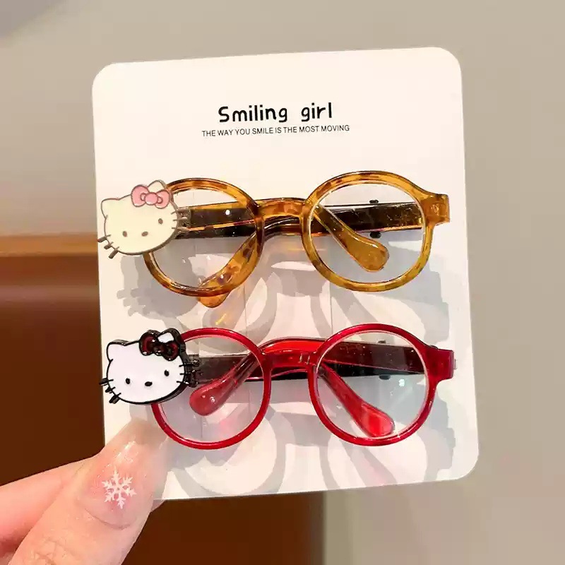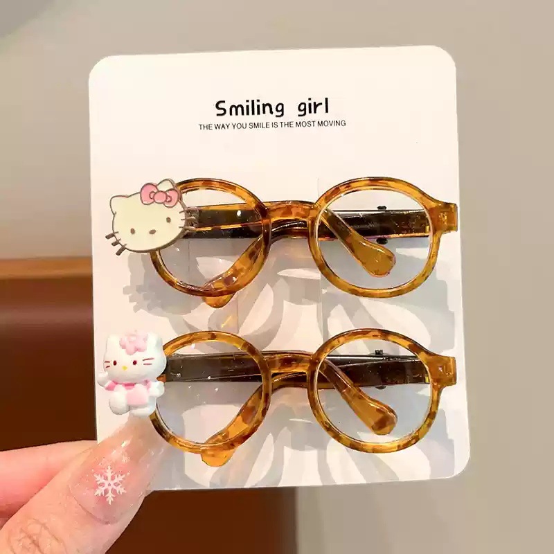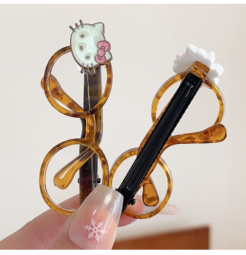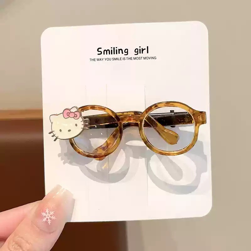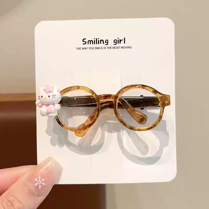 超火可爱小型眼镜框发夹卡通玩偶镶嵌头饰豹纹彩色系儿童发夹头饰