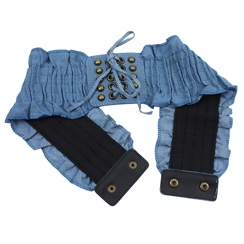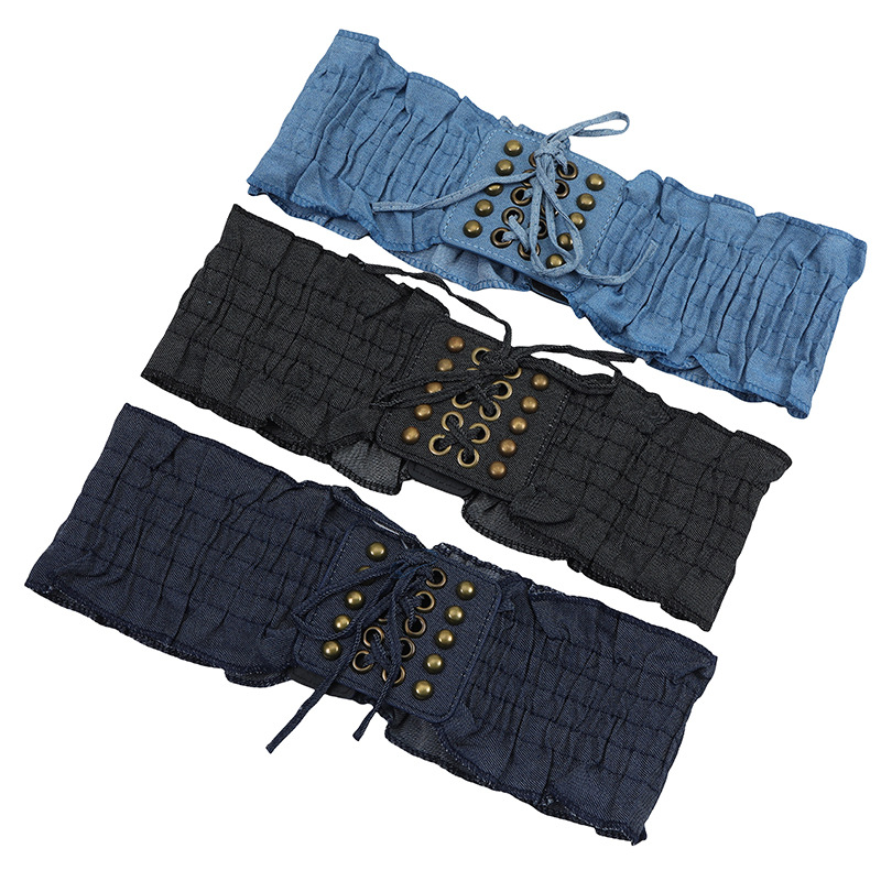 腰封女款高级感牛仔布铆钉配饰松紧腰带女百搭装饰连衣裙束腰腰封